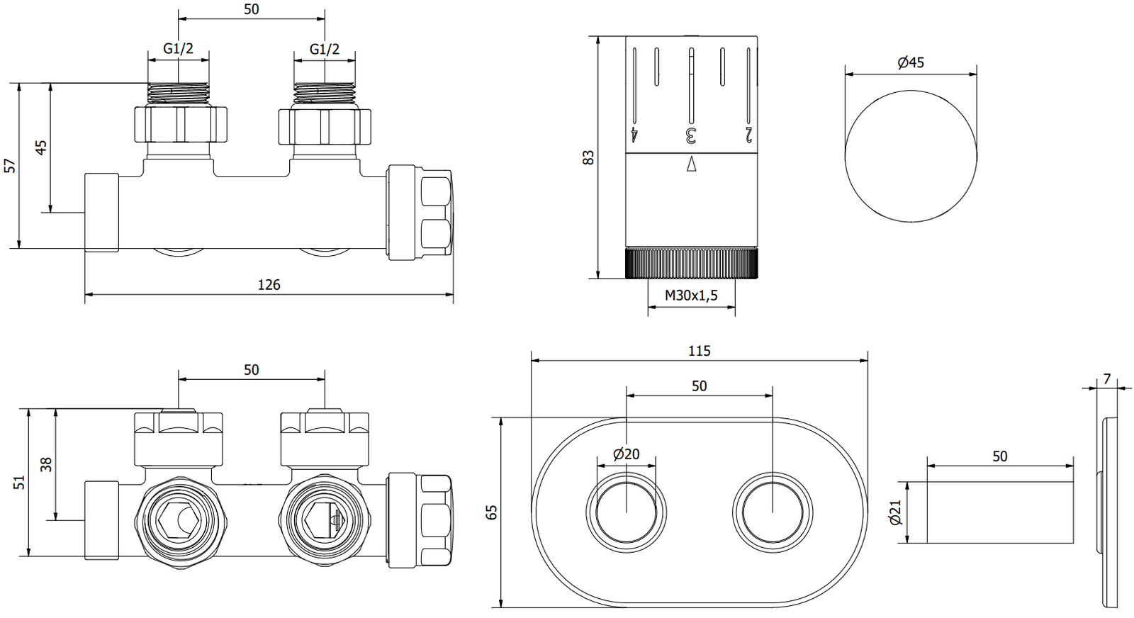 Разстояние между отворите за радиаторни връзки: 50 mm