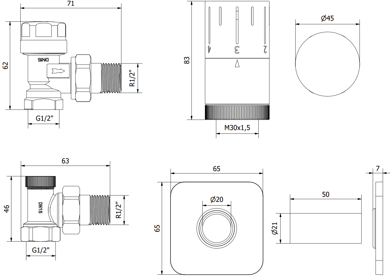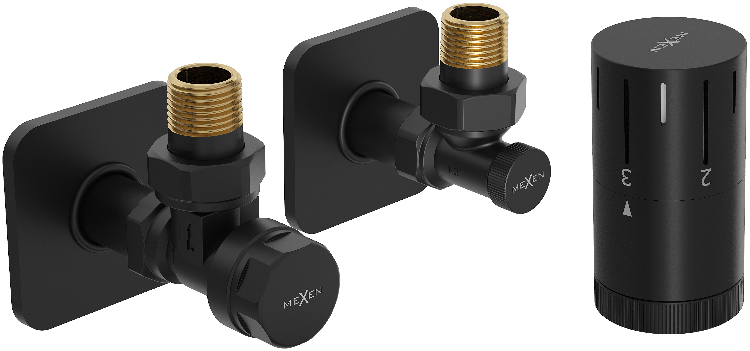 Комплектът включва захранващ и изключващ клапан за радиатор