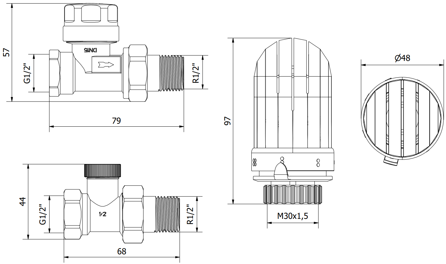 В комплекта включва подавателен и спирателен радиаторен вентил