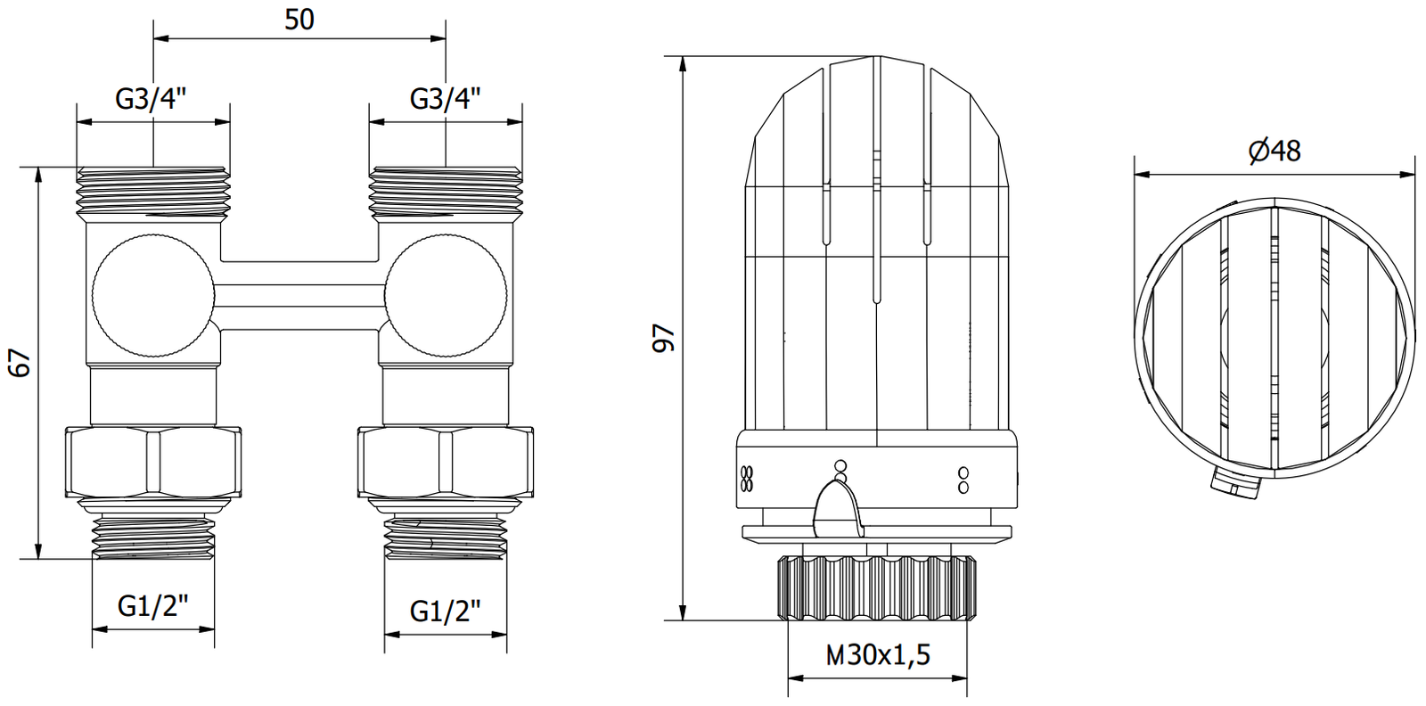 Диаметър на фитинга: G 1/2" и pex 16x2 mm