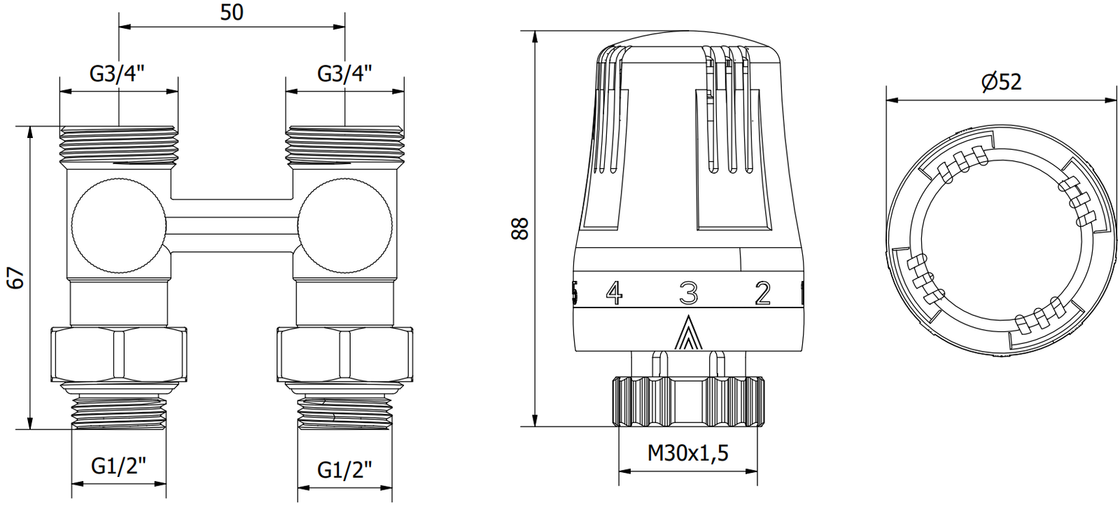 Диаметър на връзката на вентила: G 1/2" и G 3/4"