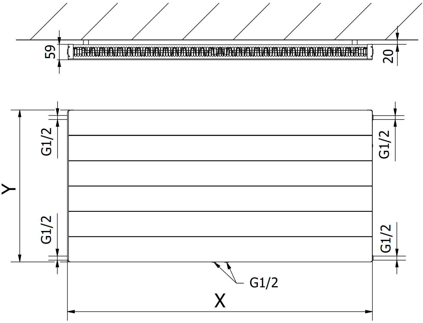 Mexen Line CCL11 панелен радиатор 300 x 1300 мм, долно централно свързване, 591 W, антрацит - W6C11L-030-130-66