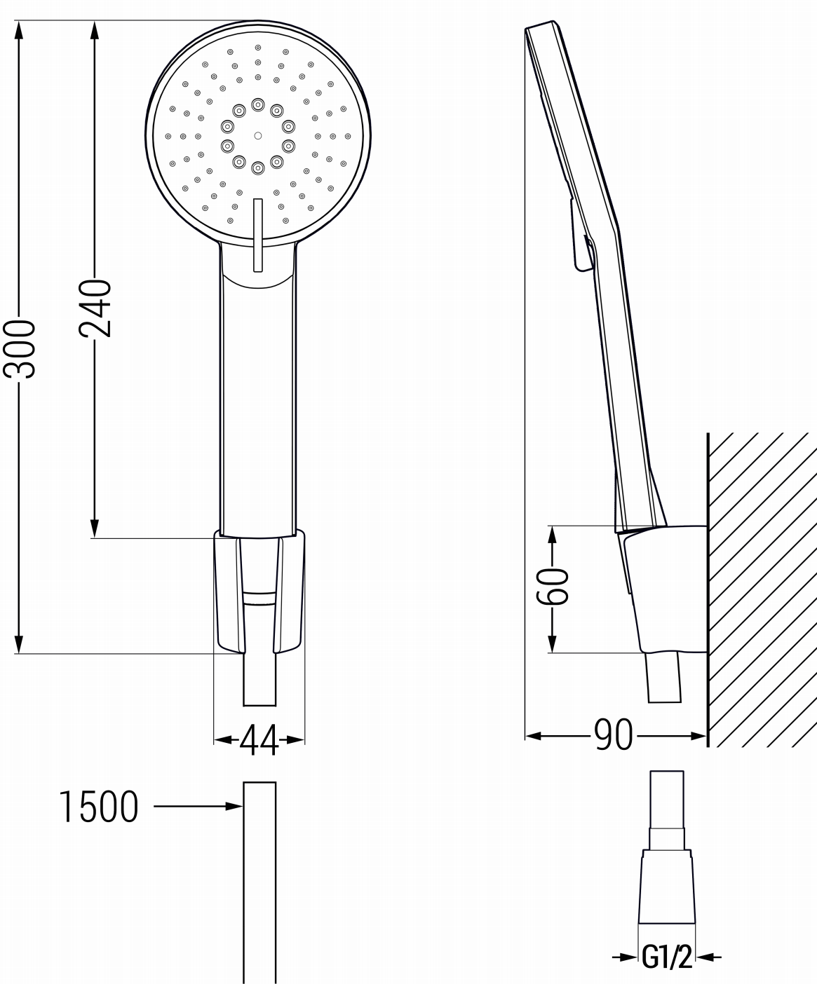 Душ ръкохватката има три вида струи, които се сменят с помощта на превключвател. Предоставя пълна свобода и възможност за съобразяване с нуждите на потребителя, предлагайки нежна или по-силна и по-концентрирана струя вода.