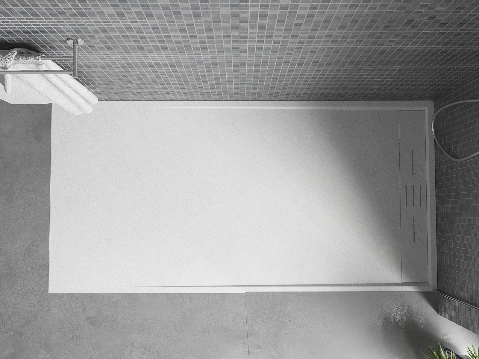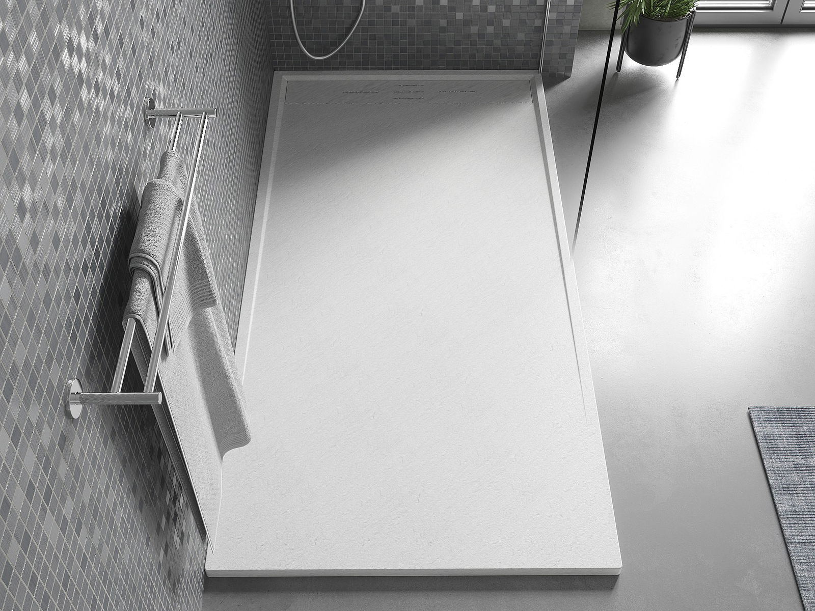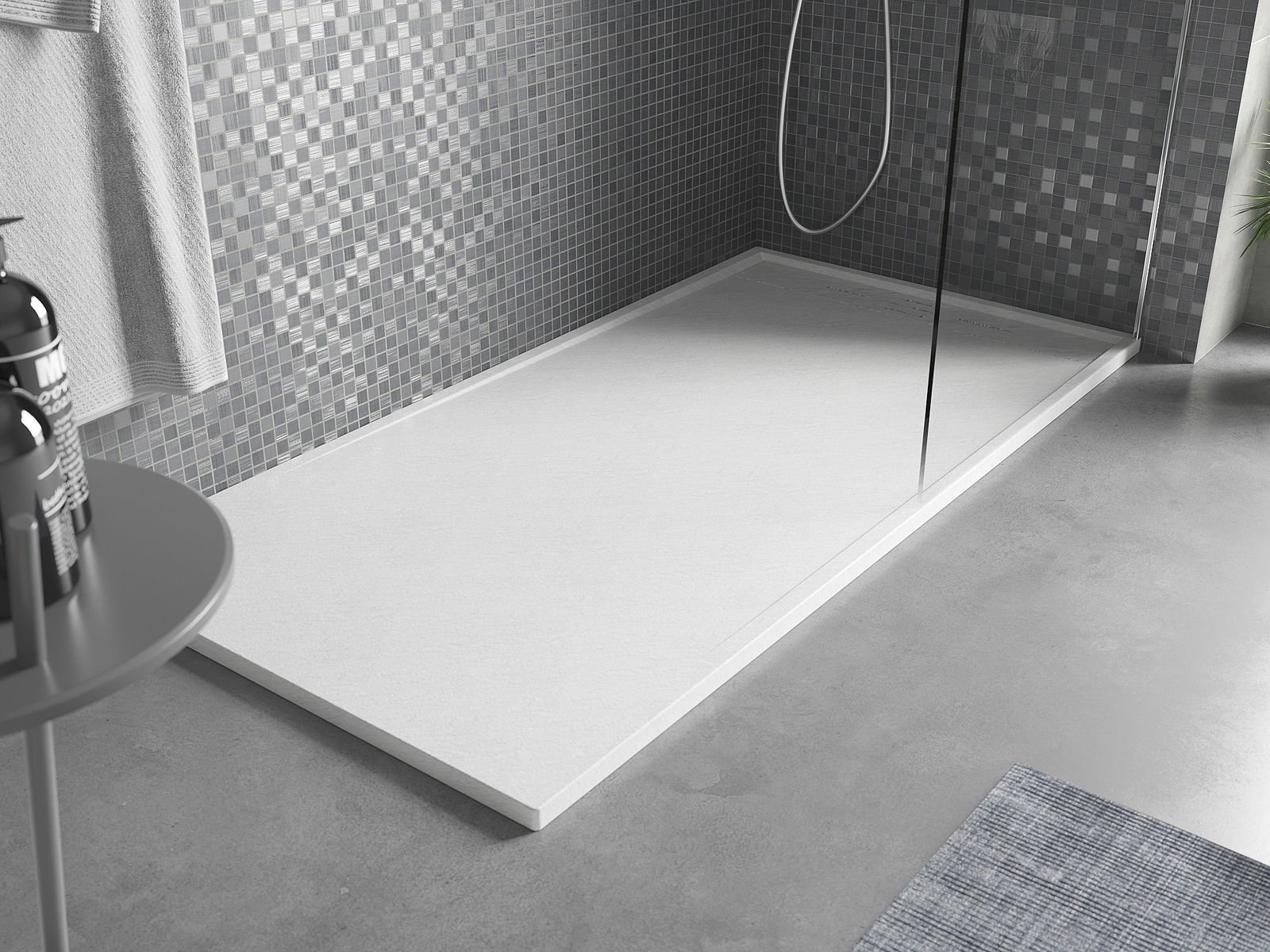 Повърхността на подложката за душ със своята структура наподобява камък. Тя представлява уникално съчетание на естествен вид с модерното оформление на интериора. Добавя характер, подчертава естетиката и елегантността на декора на банята и възхищава със своята форма.