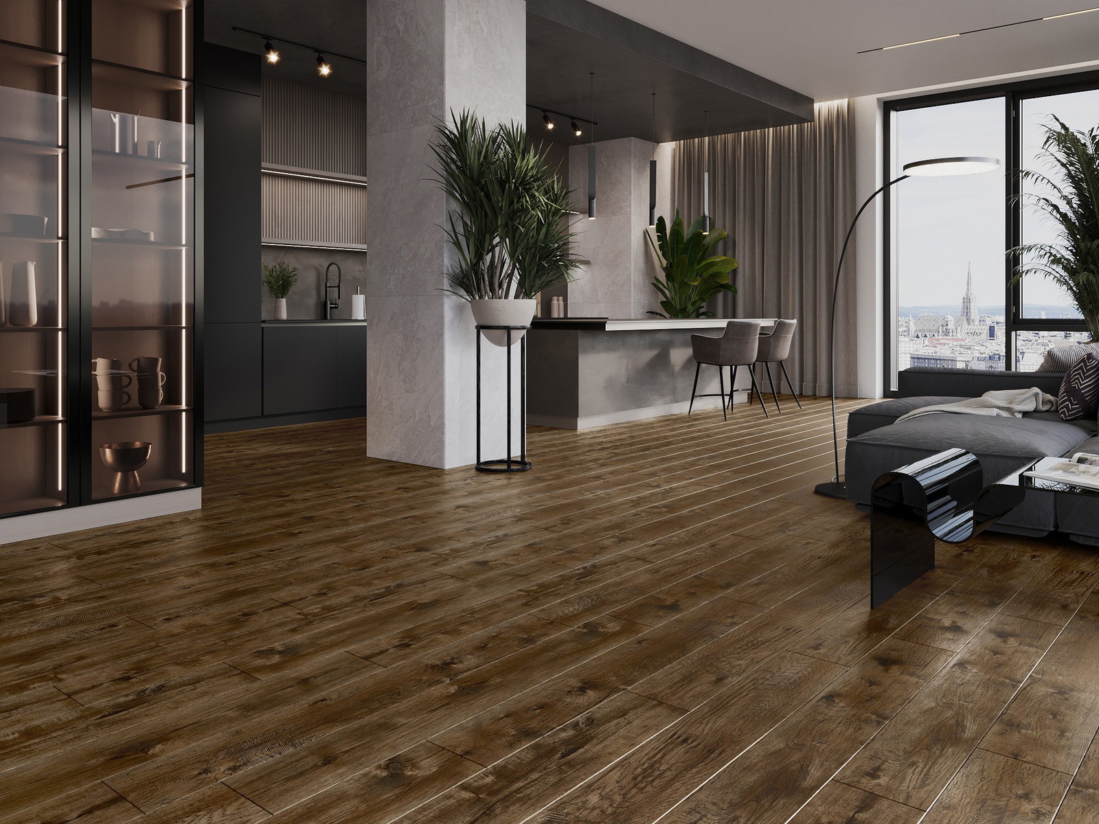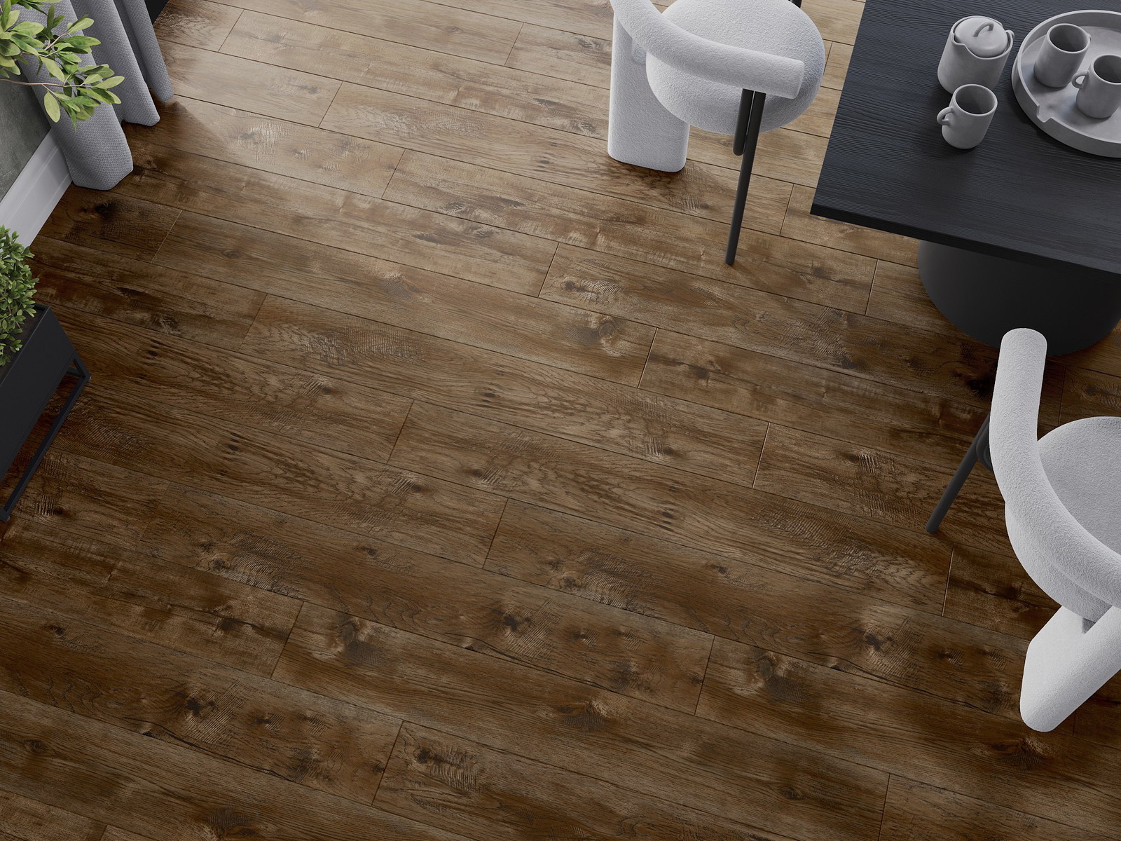 Панелите имат 4-странна фуга - всяка страна е обработена така, че при нареждане да се образува V-образно съединение. Този дизайн придава на пода по-изразена структура, което му добавя дълбочина и естетически характер. Този ефект е особено ценен в съвременните интериори, където детайлите подчертават уникалния изглед на вътрешността.