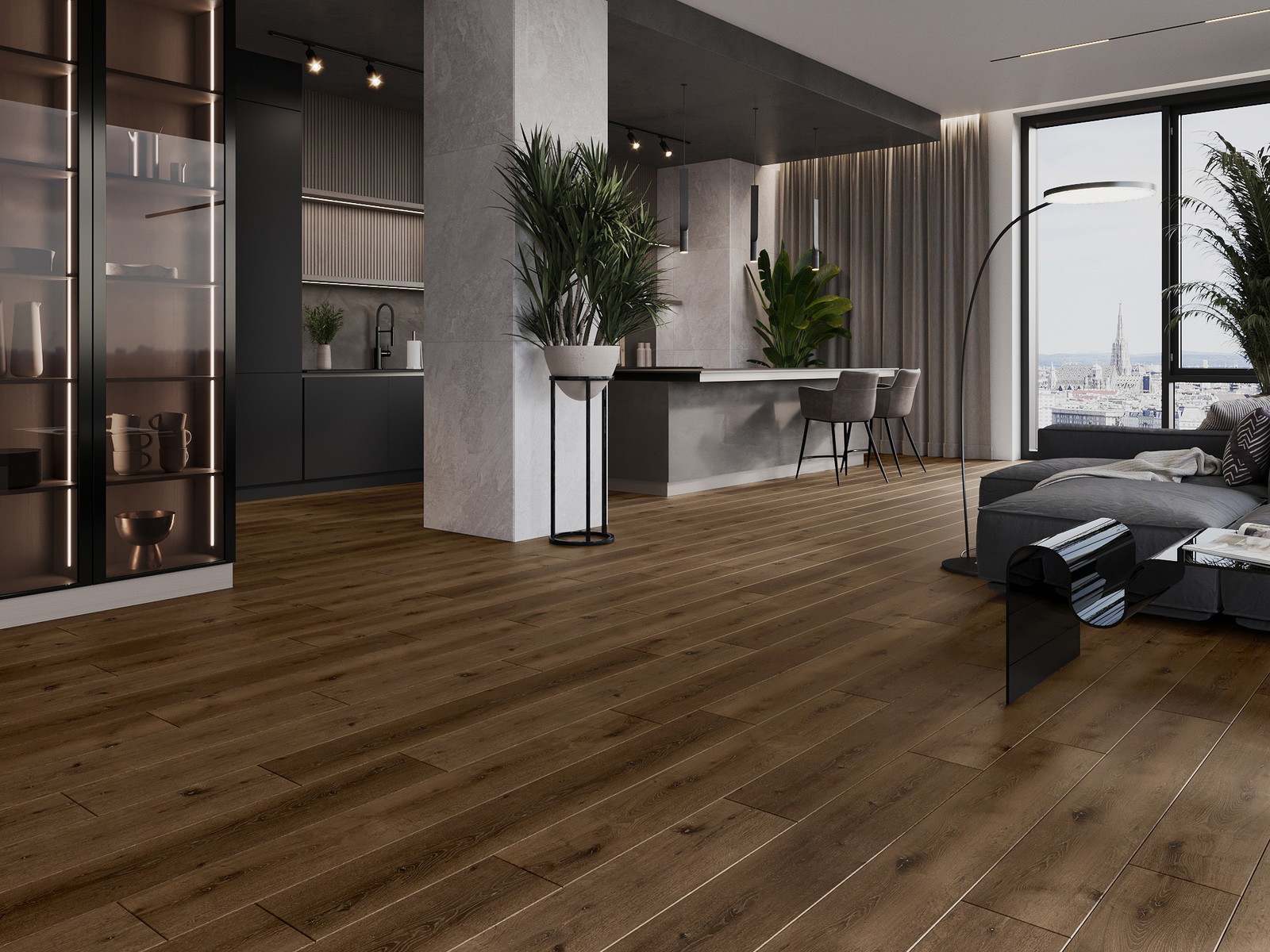 Панелите имат 4-странна фуга - всяка страна е обработена така, че при нареждане да се образува V-образно съединение. Този дизайн придава на пода по-изразена структура, което му добавя дълбочина и естетически характер. Този ефект е особено ценен в съвременните интериори, където детайлите подчертават уникалния изглед на вътрешността.