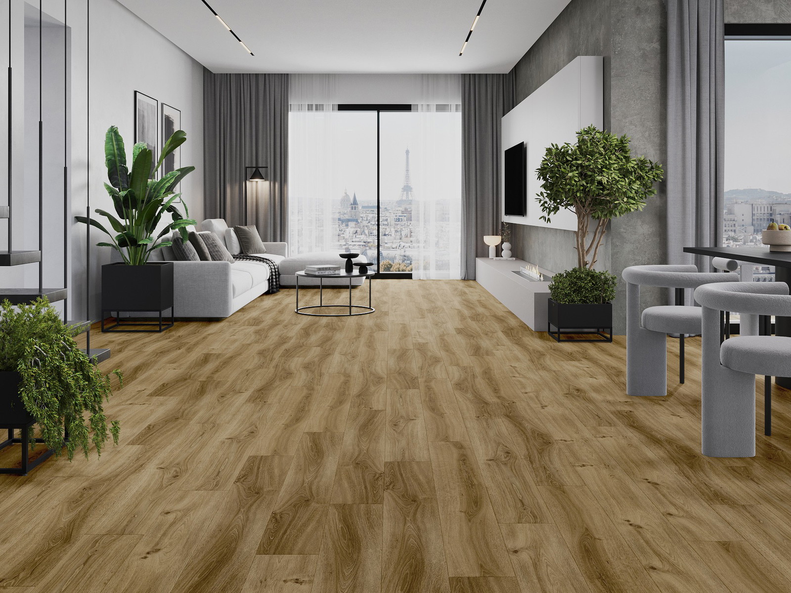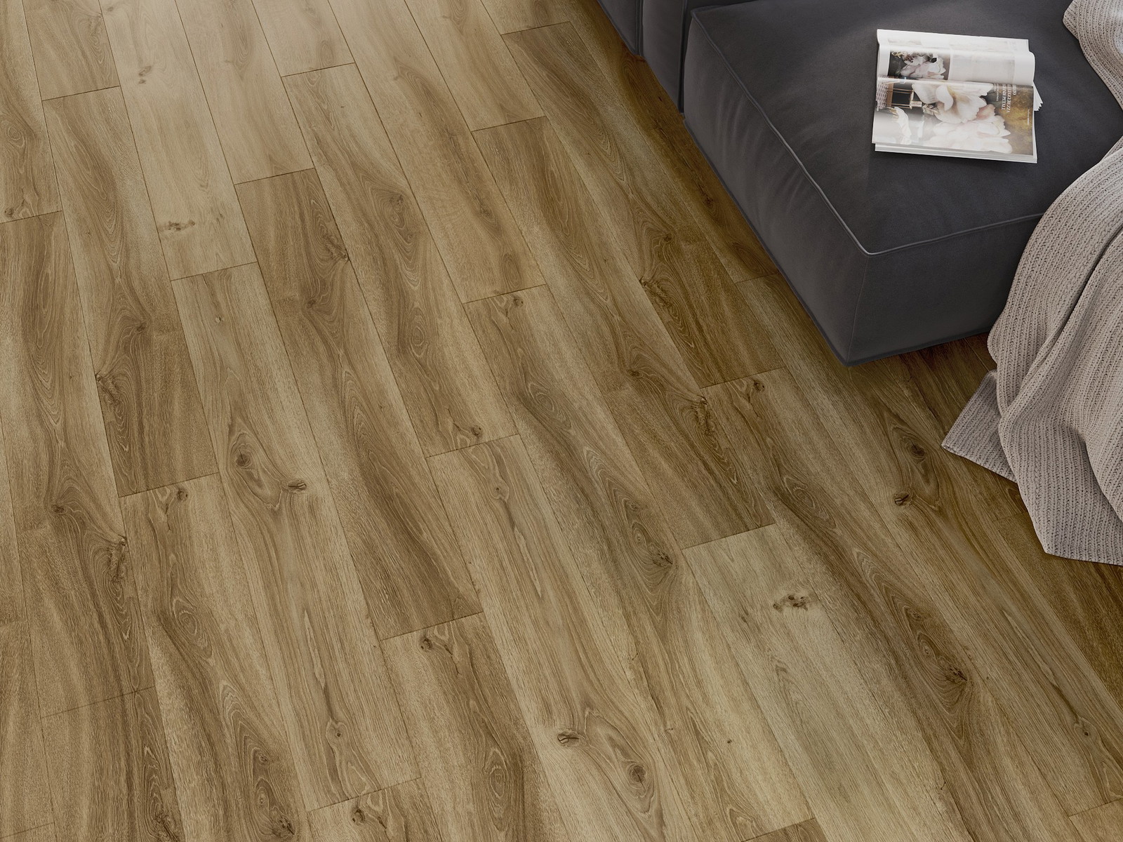 Панелите имат 4-странна фуга - всяка страна е обработена така, че при нареждане да се образува V-образно съединение. Този дизайн придава на пода по-изразена структура, което му добавя дълбочина и естетически характер. Този ефект е особено ценен в съвременните интериори, където детайлите подчертават уникалния изглед на вътрешността.