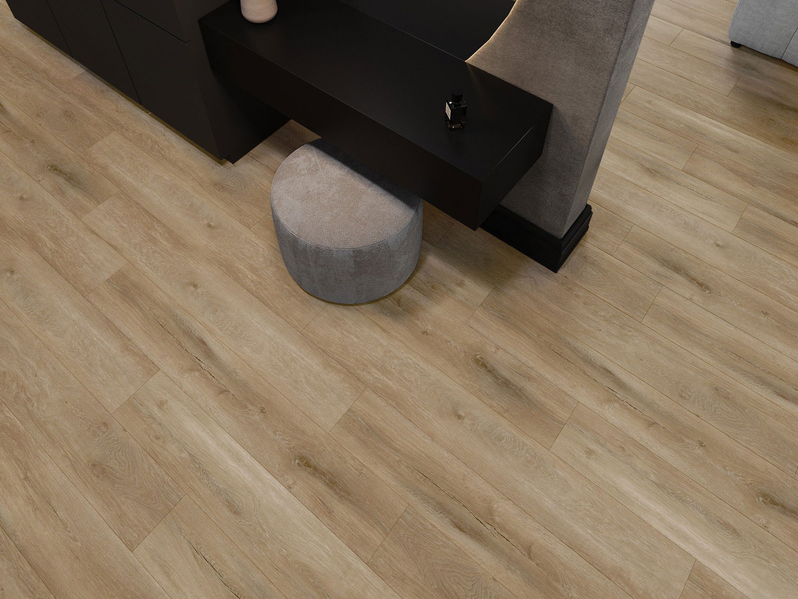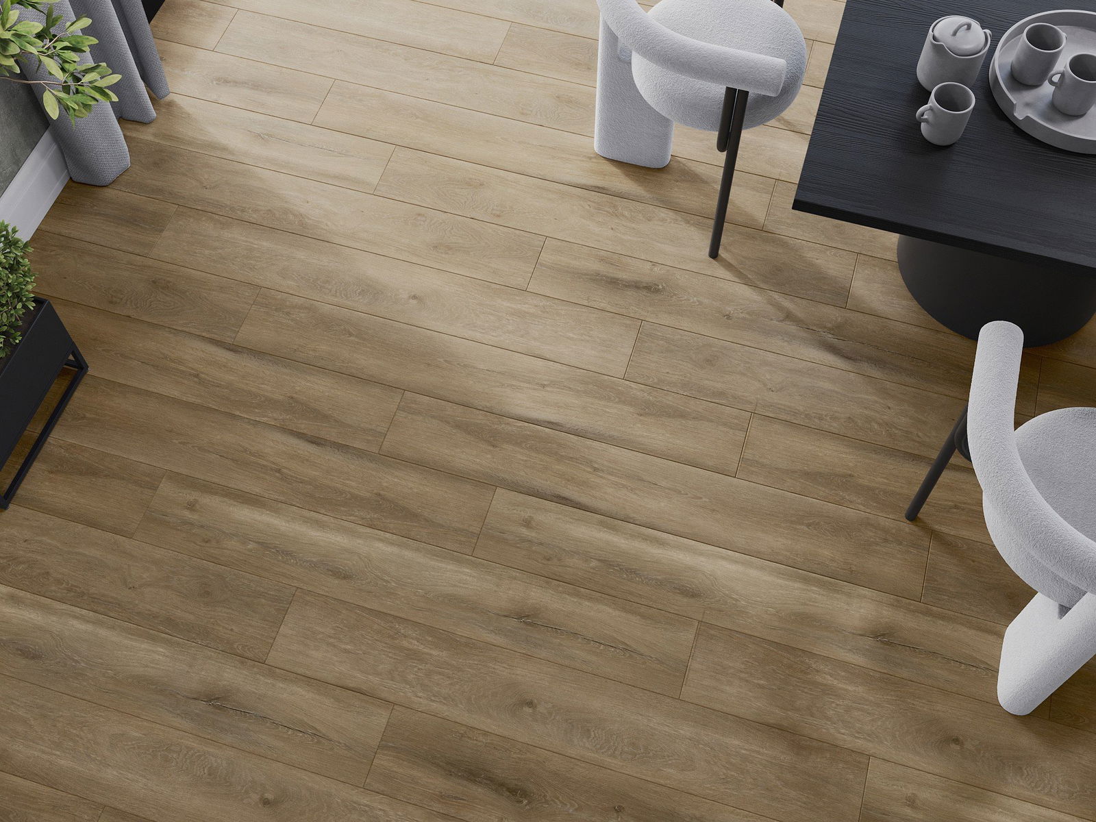 Панелите имат 4-странна фуга - всяка страна е обработена така, че при нареждане да се образува V-образно съединение. Този дизайн придава на пода по-изразена структура, което му добавя дълбочина и естетически характер. Този ефект е особено ценен в съвременните интериори, където детайлите подчертават уникалния изглед на вътрешността.