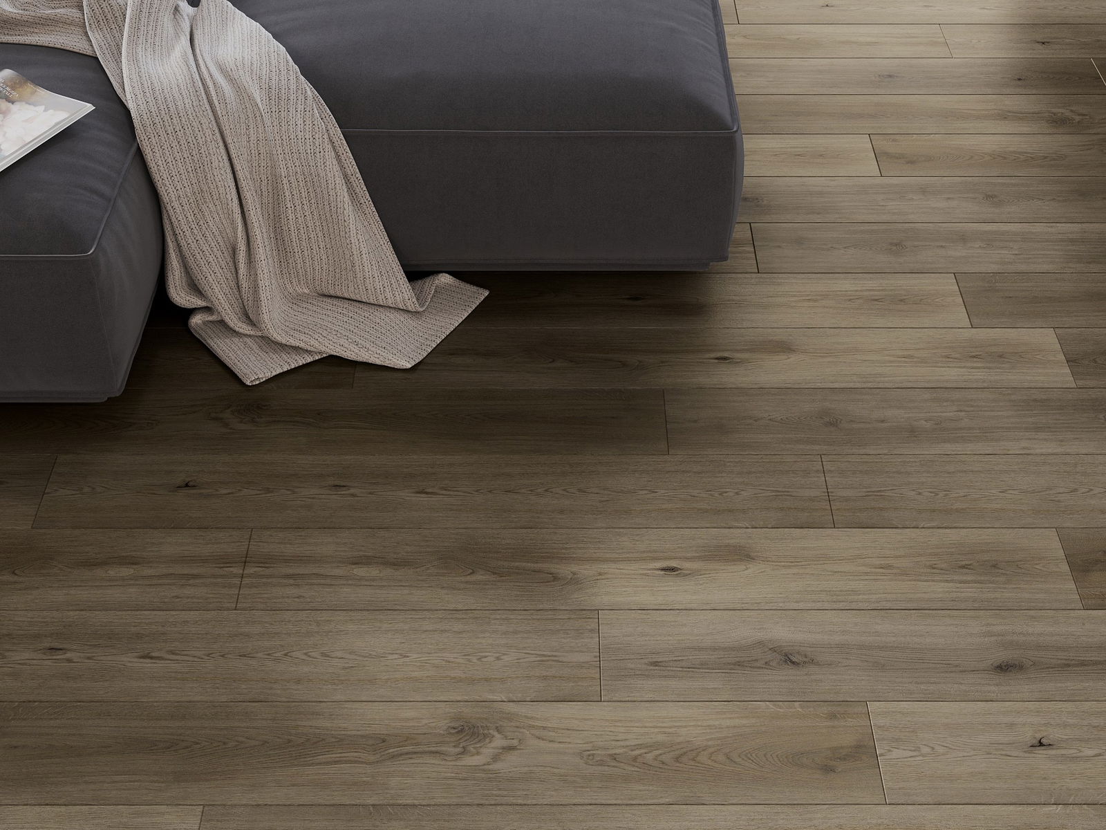Виниловите панели 1240 x 182 мм SPC 6,5 мм предлагат изключителна издръжливост и гъвкавост, отличен избор за всяка повърхност. Благодарение на 100% водоустойчивост и повърхност, улесняваща почистването, те са идеалният избор за семейства с деца и домашни любимци. Дебелината 6,5 мм и интегрираната подложка IXPE 1,5 мм осигуряват комфорт, а 4-странната V-фуга подчертава тяхната естетика. Продуктът е съвместим с нискотемпературно подово отопление и устойчив на драскотини.