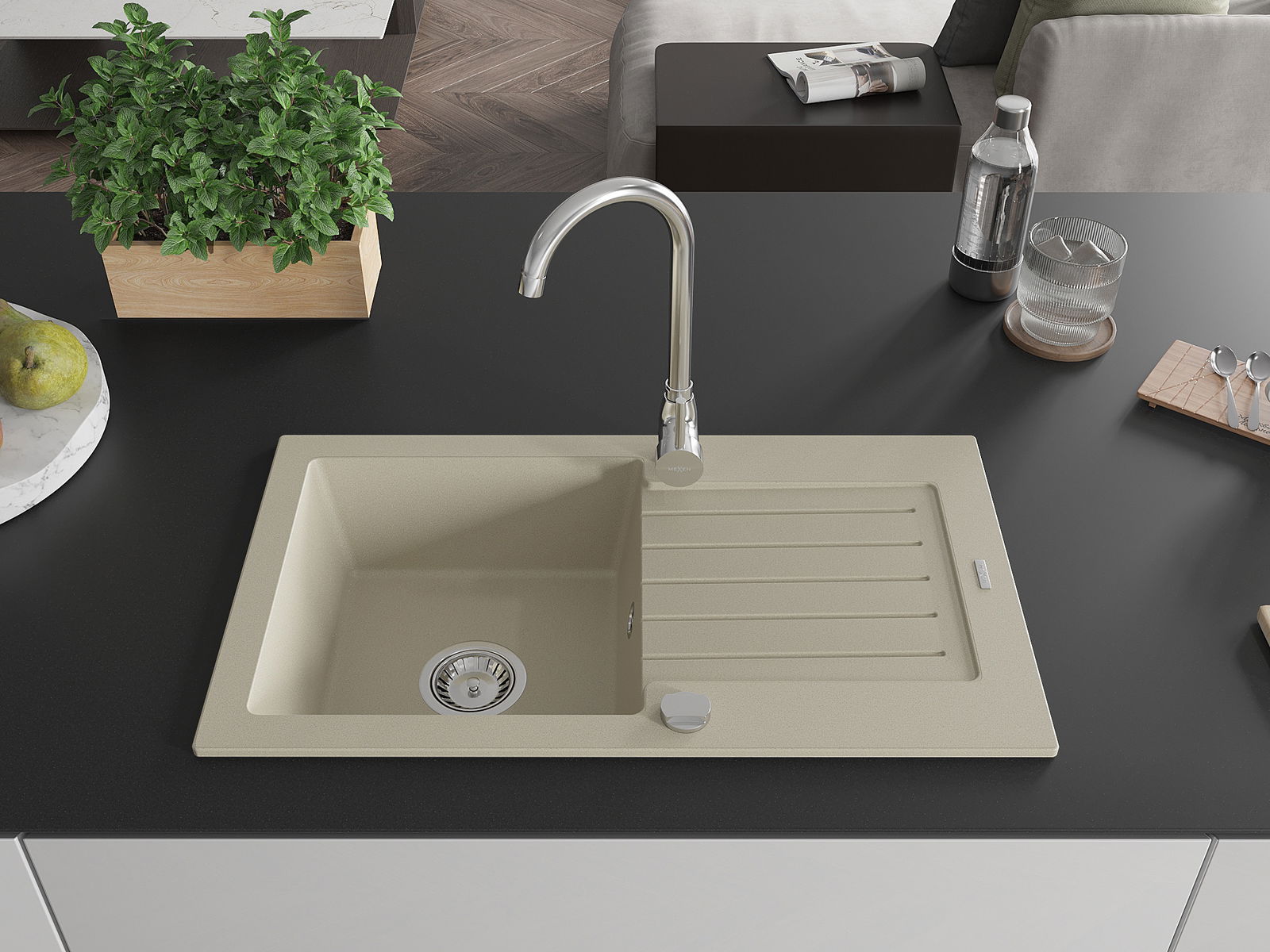 Повърхността на мивката е устойчива на петна и оцветявания, благодарение на което е лесна за поддържане на чистота и запазва цвета си за дълго време на употреба. Естетично и практично допълнение към всяка кухня.