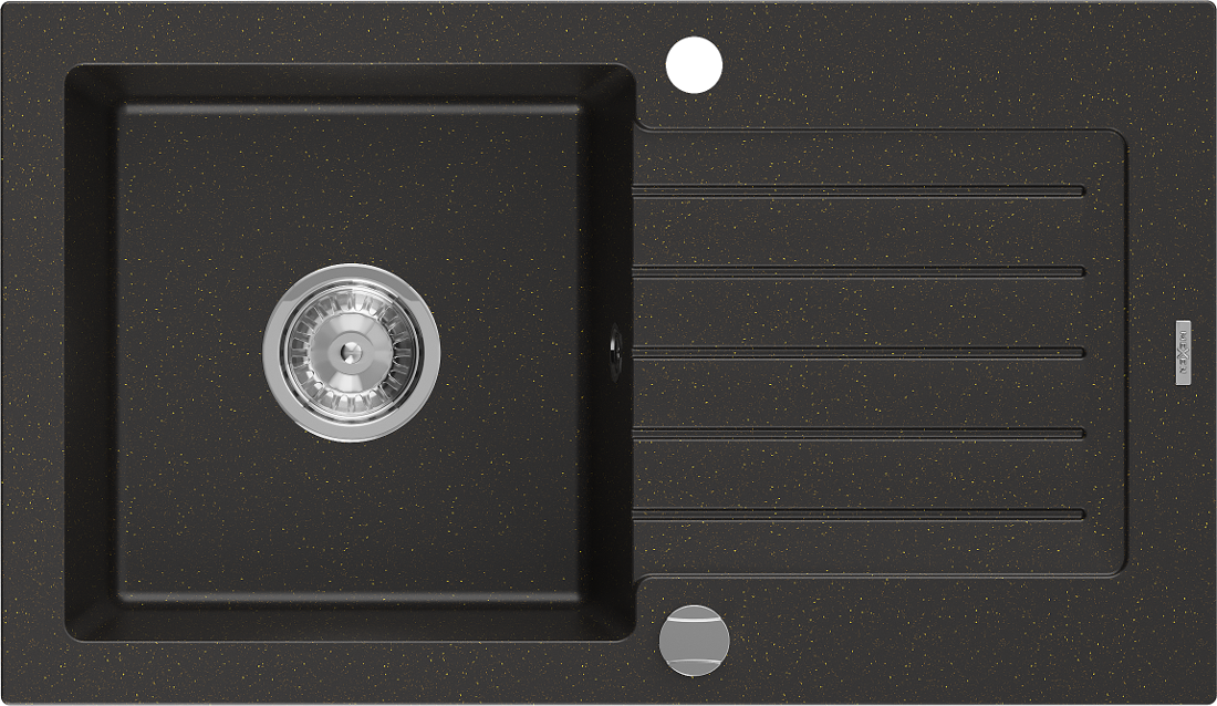 Mexen Pablo гранитна мивка с 1 отделение и дренаж 752 x 436 mm, черен/златен металик, хромиран сифон - 6510751010-75