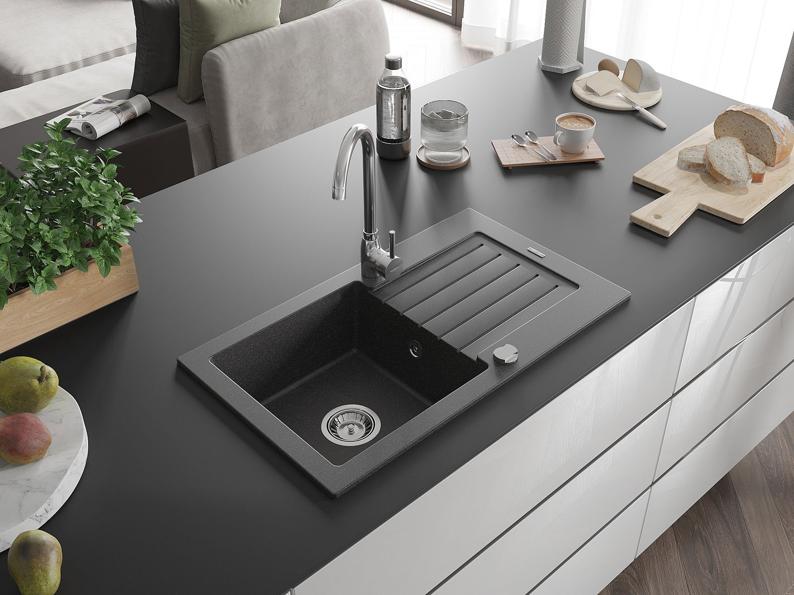 Мивката е направена от висококачествен гранит. Това е елегантно и най -вече практично допълнение към всяка кухня, независимо от нейния стил. Висококачествената и гранитна издръжливост осигуряват много години употреба.