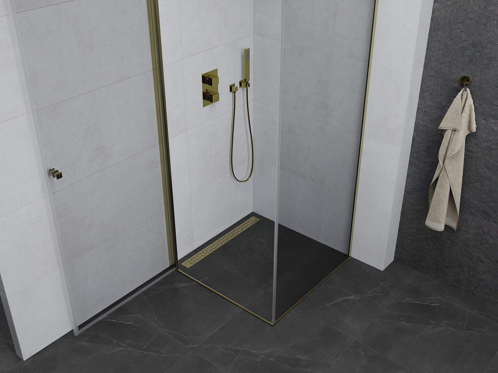 Удобната и удобна дръжка беше направена от траен и устойчив метал. Модната форма, комбинирана с покритие, съобразено с цвета на профилите, придава на целия модерен и стилен вид, подчертавайки естетиката на всяка баня.