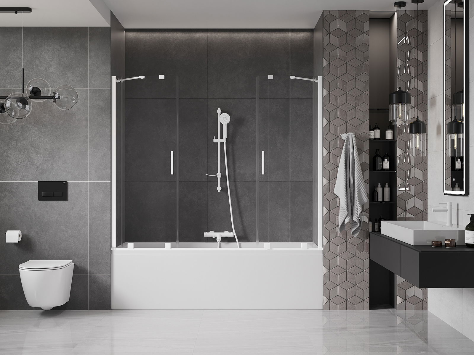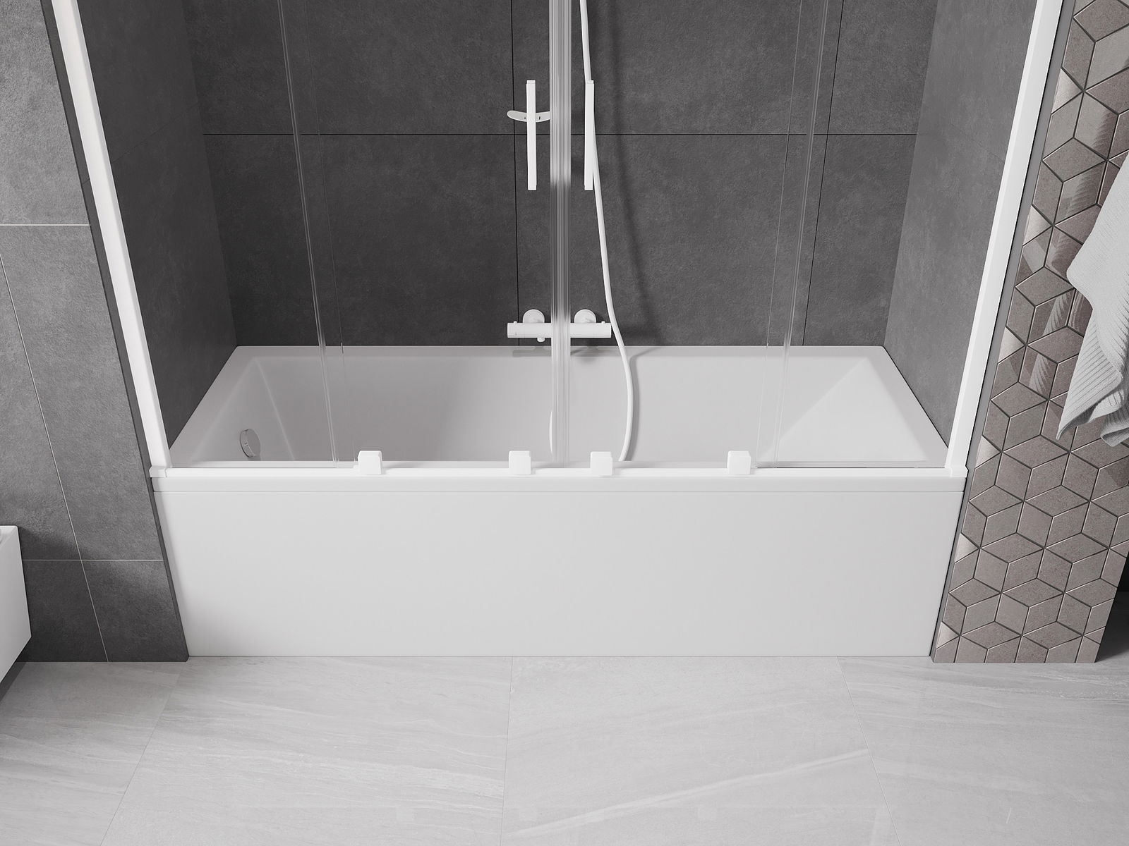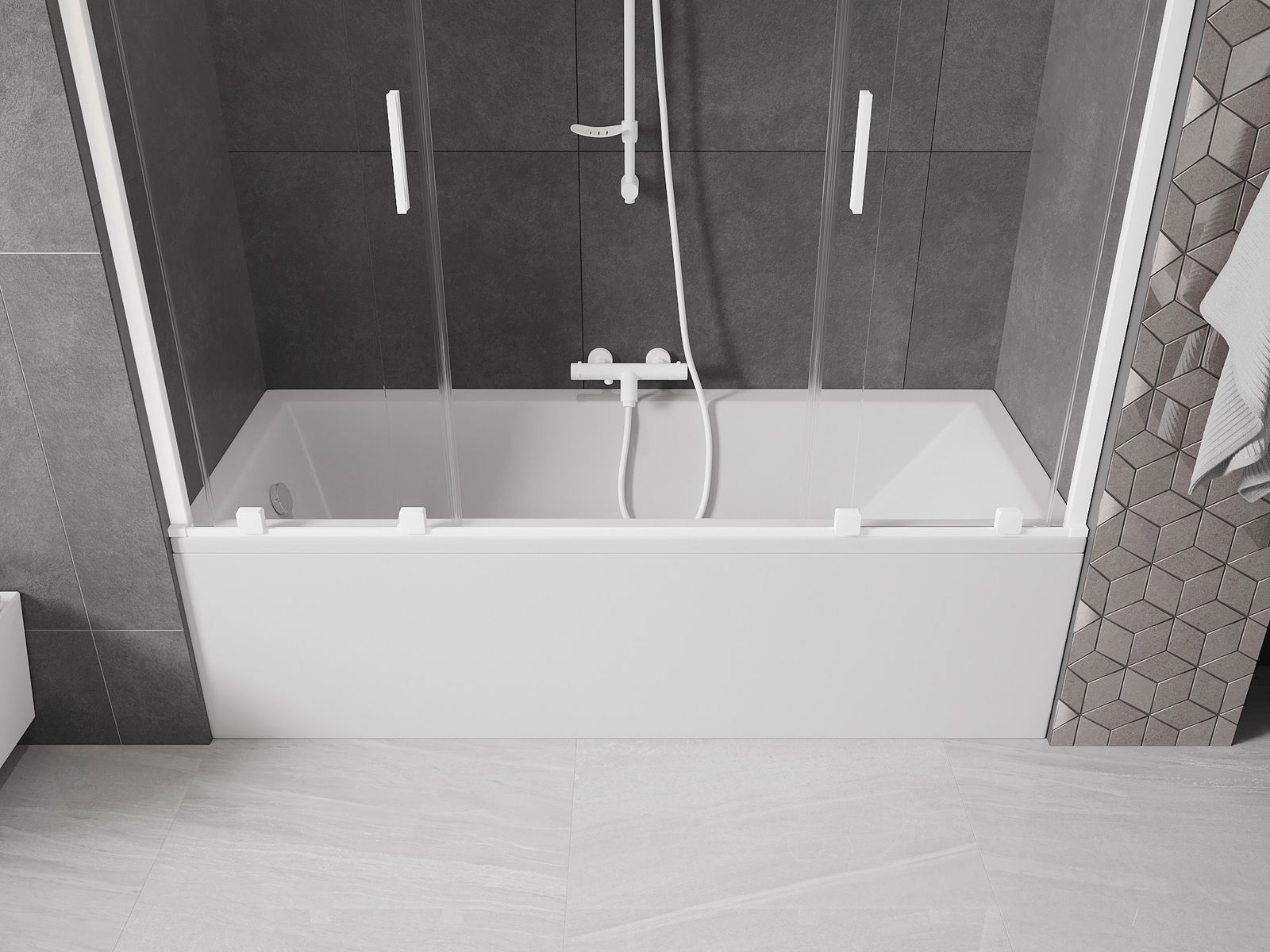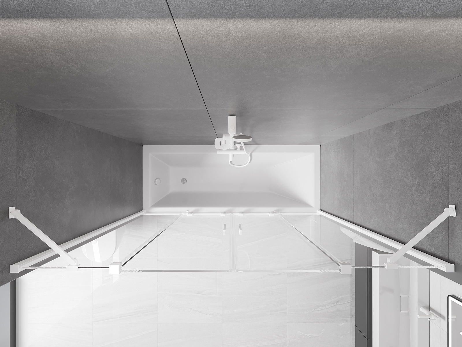 Mexen Velar Duo параван за вана, 2-крилен, плъзгащ се, 190 x 150 см, прозрачен, бял - 896-190-000-02-20