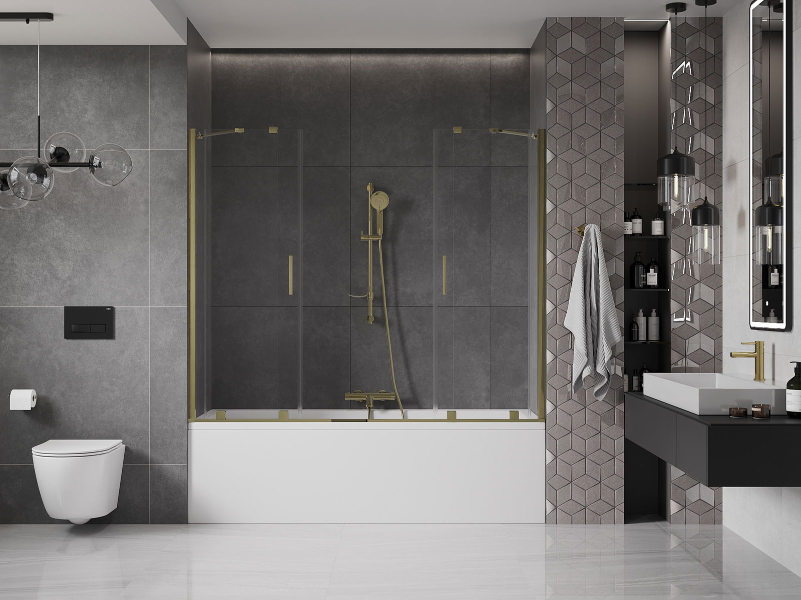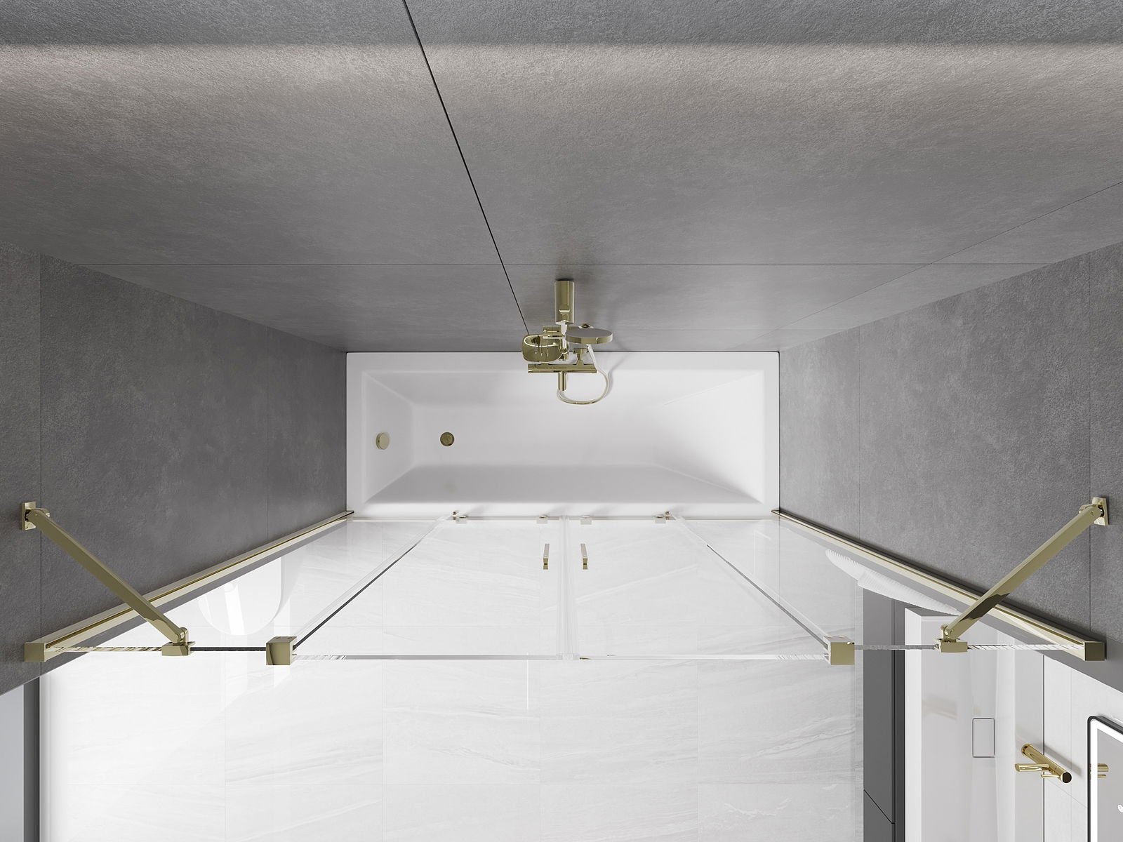 Mexen Velar Duo двукрилен плъзгащ се параван за вана 190 x 150 см, прозрачен, златен - 896-190-000-02-50