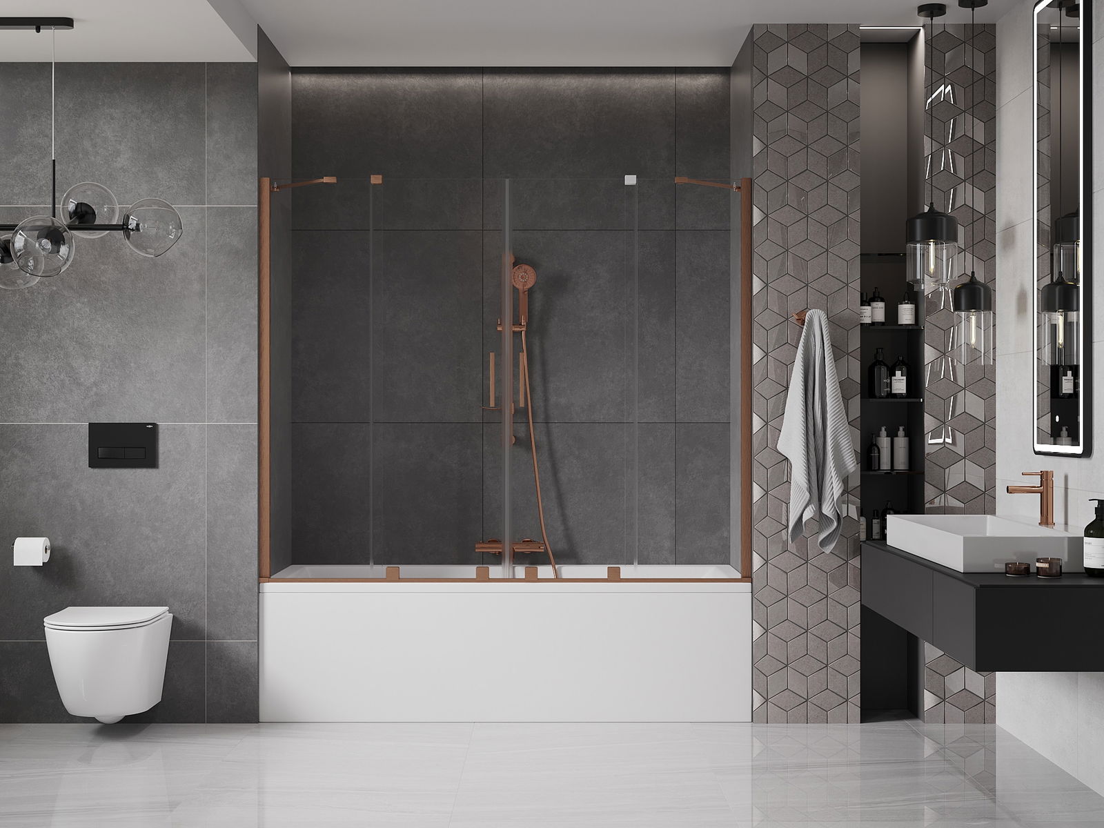 Mexen Velar Duo двукрилен плъзгащ се параван за вана 190 x 150 cm, прозрачeн, матирана мед - 896-190-000-02-65