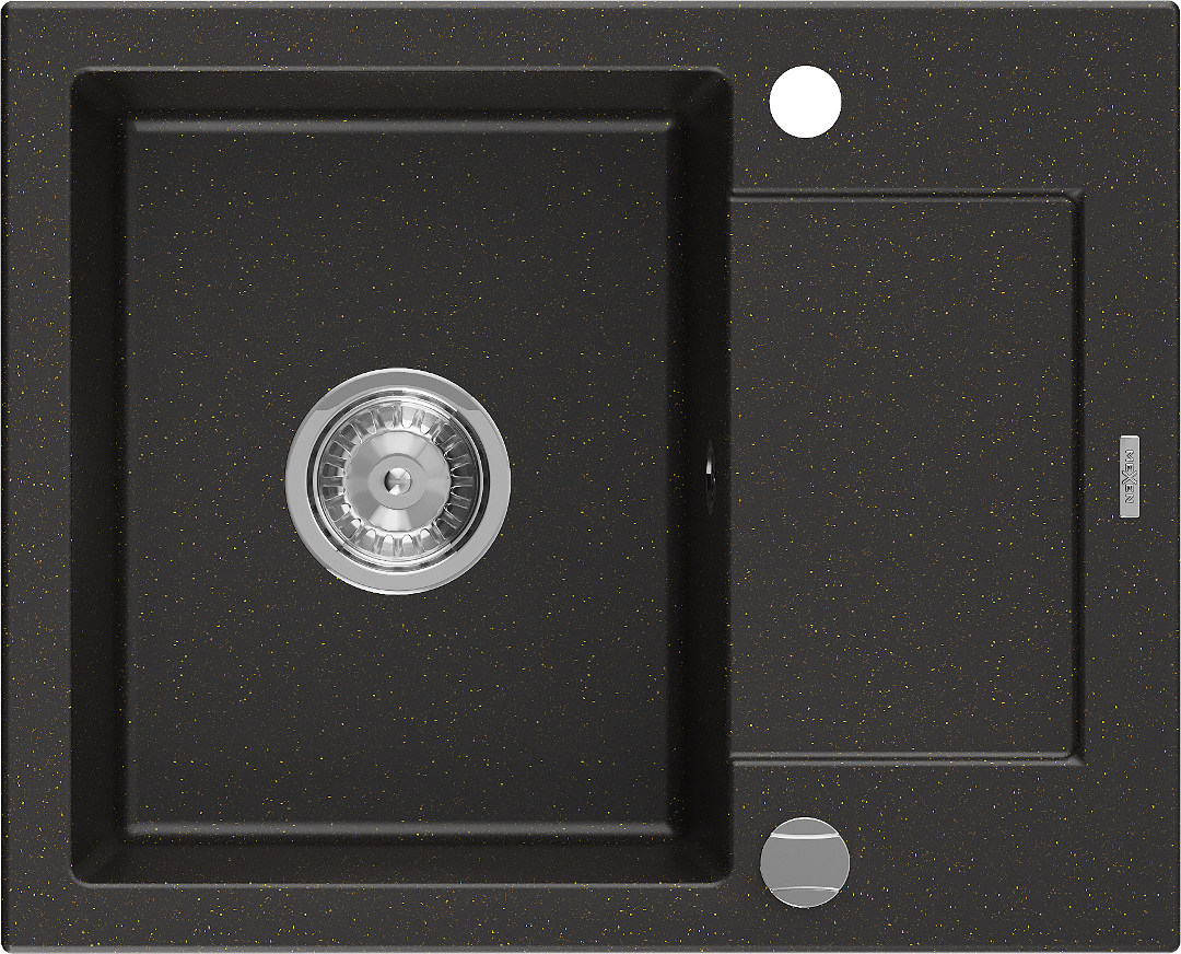 Mexen Enzo гранитна мивка с 1 гнездо и отцедник 576 x 465 мм, черен/златен металик, сифон хром - 6506571005-75