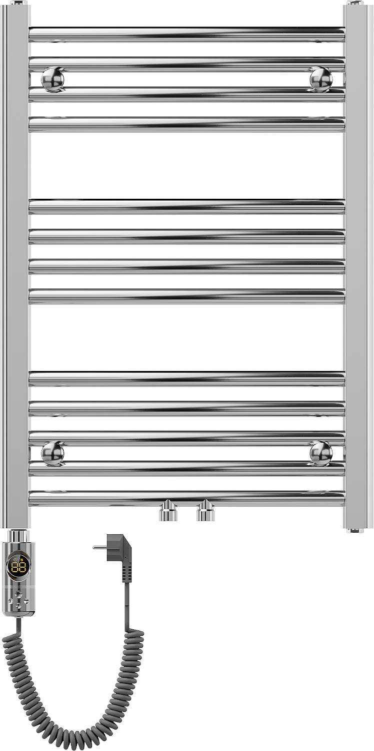 Електрическият радиатор Mexen Ares е съчетание на модерност и функционалност. Предлага компактни размери (височина 700 мм, ширина 500 мм) и стилен хромиран вид, идеален за всякакъв интериор. Изработен от трайна стомана, осигурява отоплителна мощност от 300 W. Оборудван с 13 отоплителни пръти и сензорен LED дисплей с вграден термостат, позволява прецизна настройка на температурата в диапазона 40°C-65°C. Допълнителни функции като сушене и родителски контрол го правят изключително многофункционален. Включва закачалки и монтажен комплект.