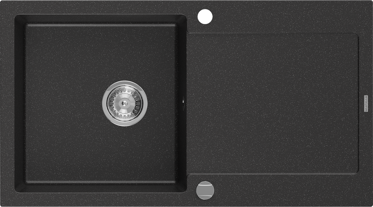 Mexen Leo мивка от гранит 1-коморна с отцедник 900 x 500 мм, черно/сребърен металик, сифон хром - 6501901010-73