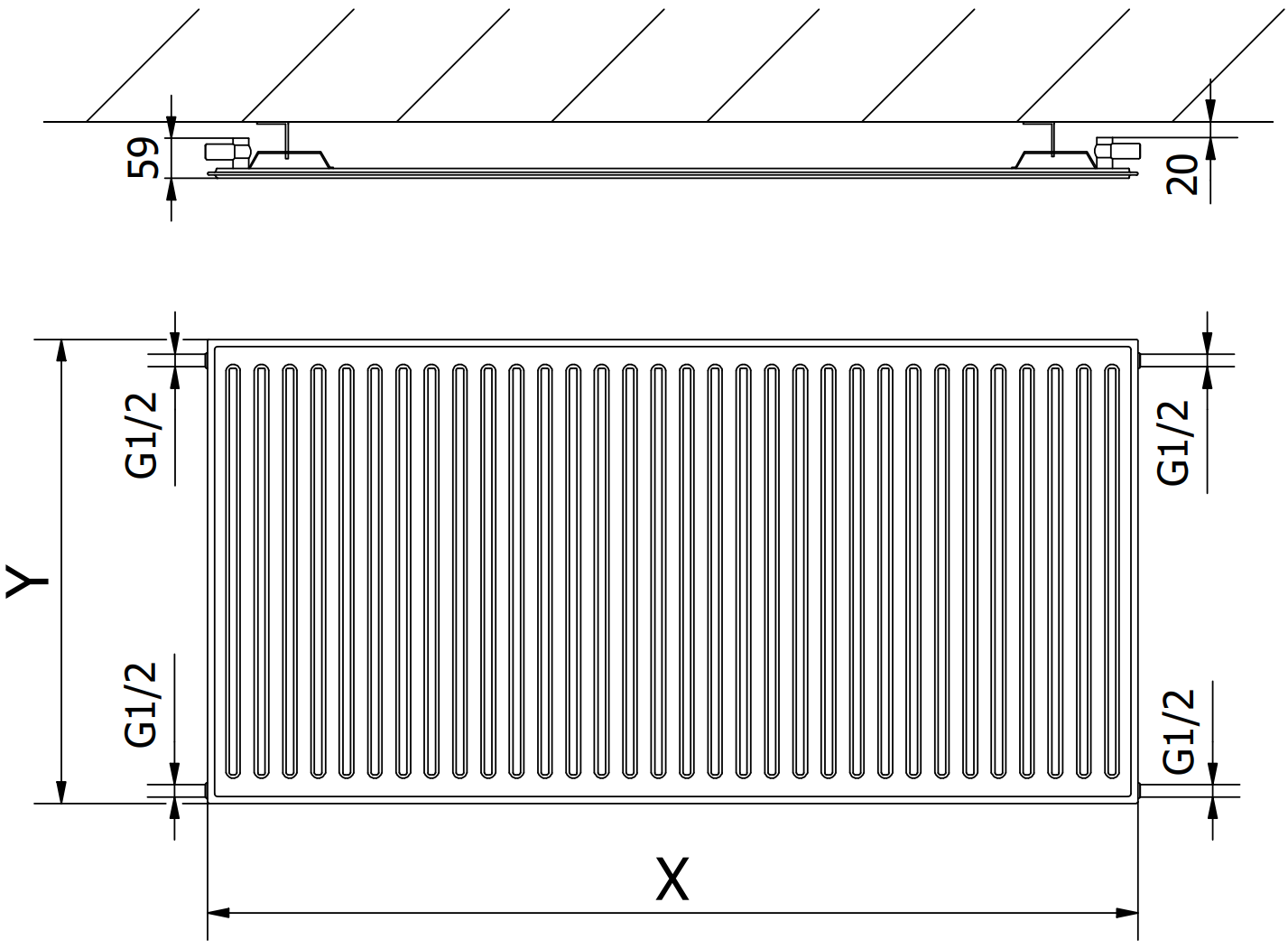 Снимките представят радиатора в размер 600 x 1200 мм.