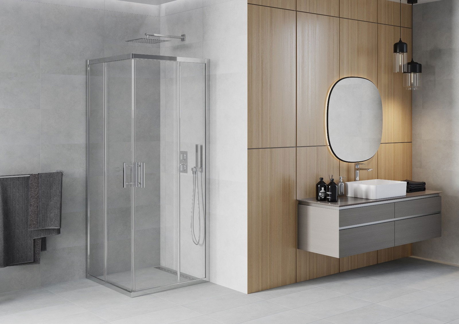 Плъзгащите се врати се движат около специални водачи и не изискват допълнително място, за да ги отворят, така че те ще работят в по -малки бани. Благодарение на двойните ролки, изработени от устойчива пластмаса, тяхното движение е течно.
