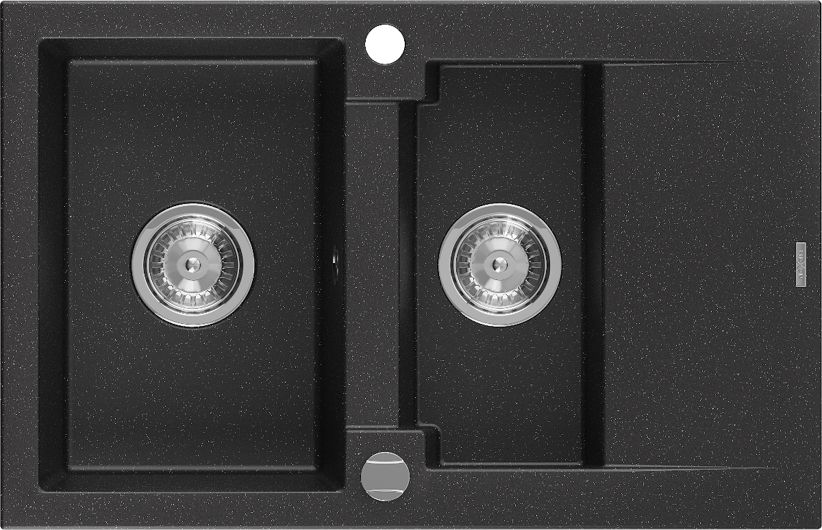 Mexen Gaspar гранитна мивка 1,5-камерна с отцедник 737 x 475 мм, черен/сребърен металик, с хромиран сифон - 6507731505-73