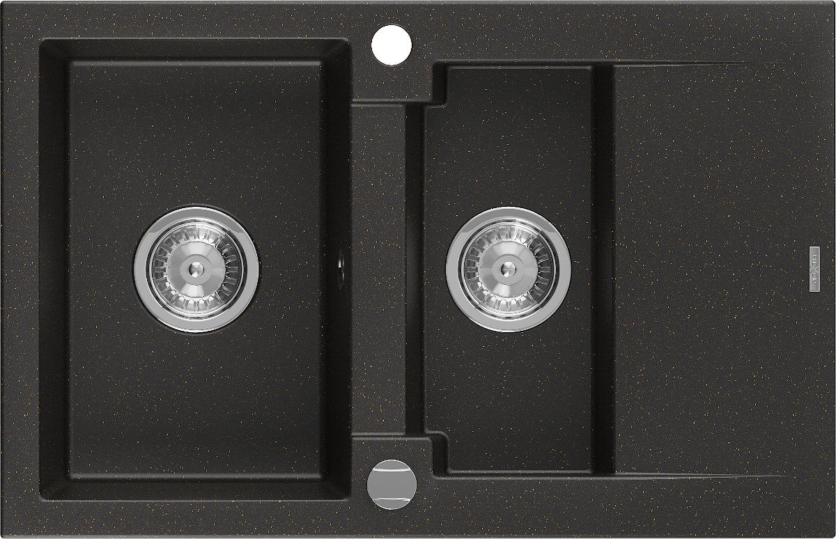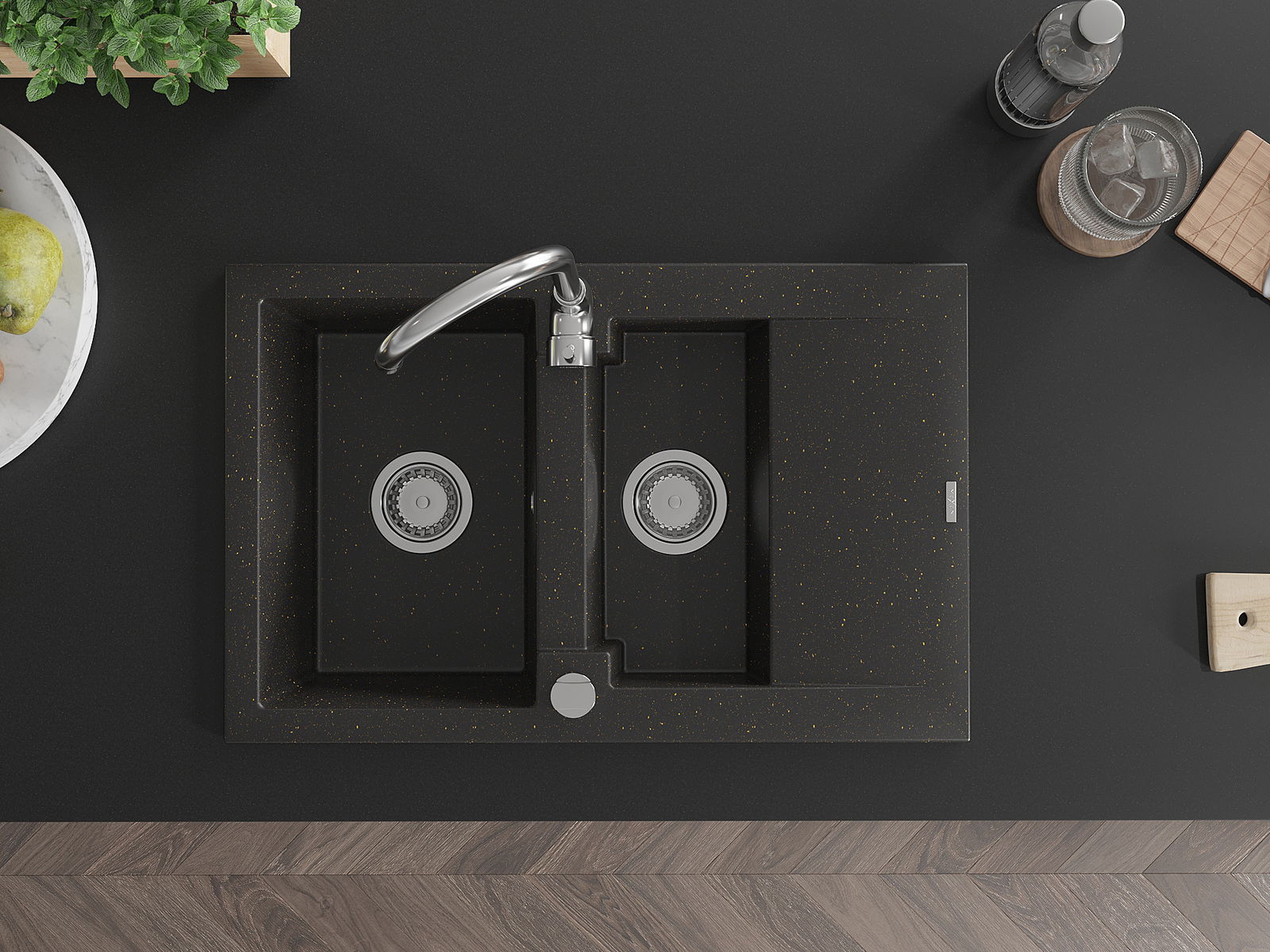 Mexen Gaspar гранитна мивка с 1,5 камери с отцедник 737 x 475 мм, черна/златен
