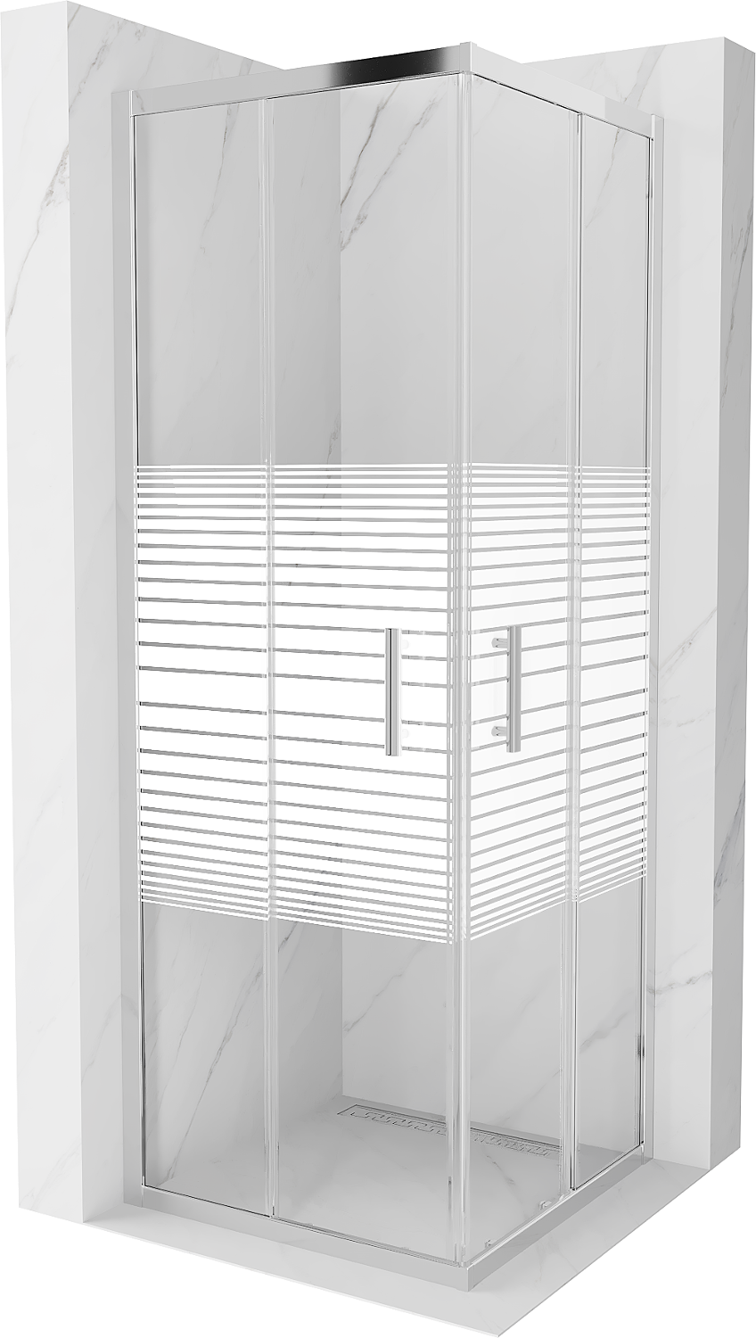 Квадратна душ кабина Mexen Rio 70 x 70 см, бели ленти, хром - 860-070-070-01-20