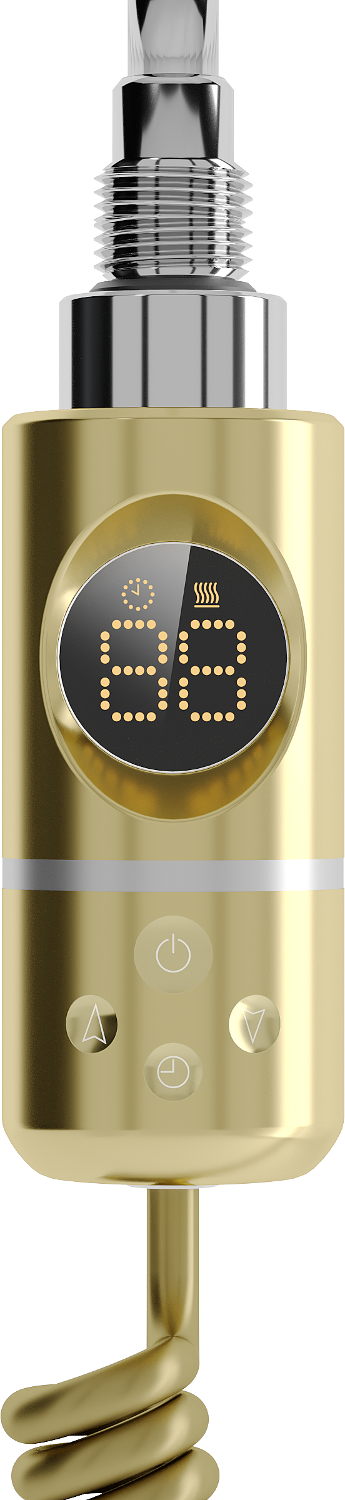 Mexen FA-I електрически нагревател 600 W в златен цвят е идеалното решение за отопление на помещения. Оборудван е с LED дисплей, показващ режима на работа и допълнителна защита срещу работа на "сухо", което осигурява безопасност и удобство при употреба. Притежава функции Sensitive позволяваща настройка на температурата в диапазона 40°C-65°C, Comfort с опция за сушене и родителска блокада. Неговата мощност на нагряване е 600 W, работното напрежение е 230V/50 Hz, дължината на нагревателния елемент е 540 mm, а класът на защита е IP44.