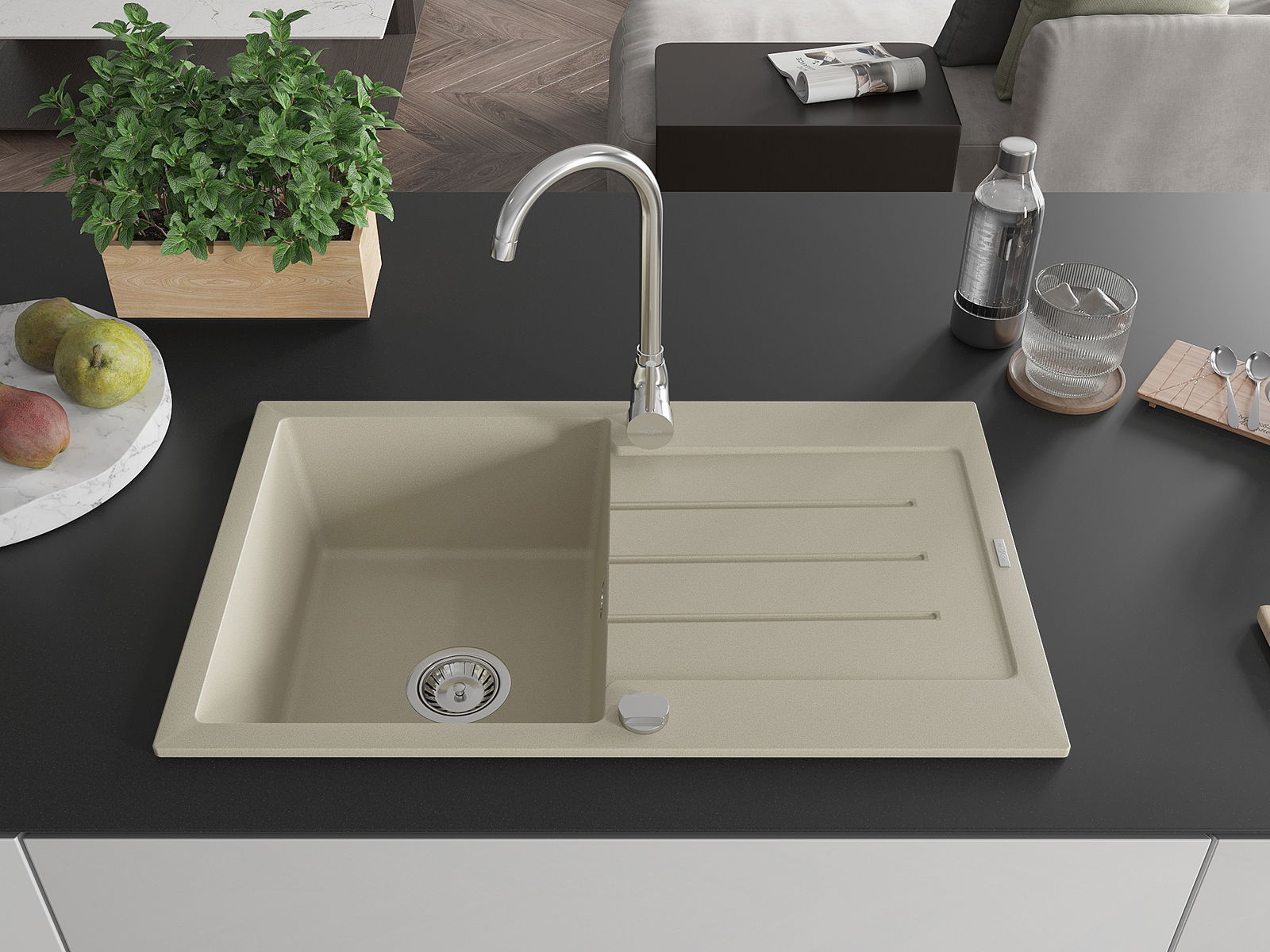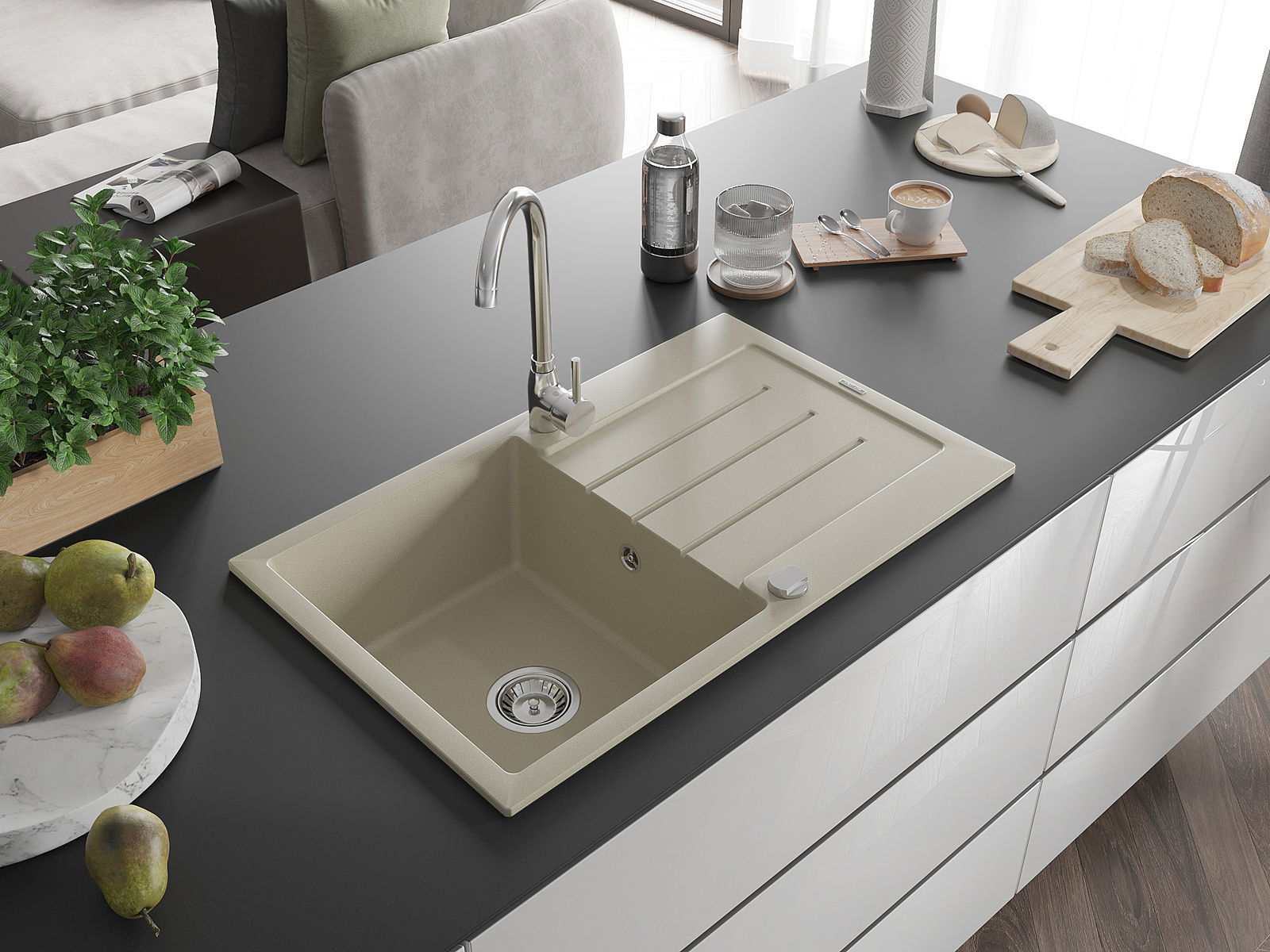 Мивката е направена от висококачествен гранит. Това е елегантно и най -вече практично допълнение към всяка кухня, независимо от нейния стил. Висококачествената и гранитна издръжливост осигуряват много години употреба.