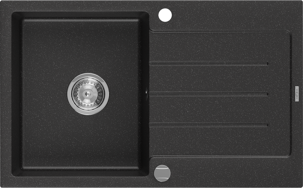 Mexen Bruno гранитна мивка с едно корито и отцедник 795 x 495 mm, черно/сребрист металик, хромиран сифон- 6513791010-73