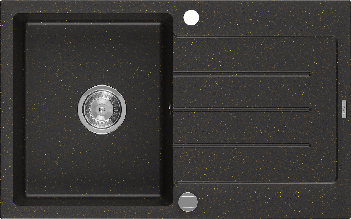Mexen Bruno мивка с отцедник от гранит, 1-коморен, 795 x 495 мм, черен/златен металик, сифон хром- 6513791010-75