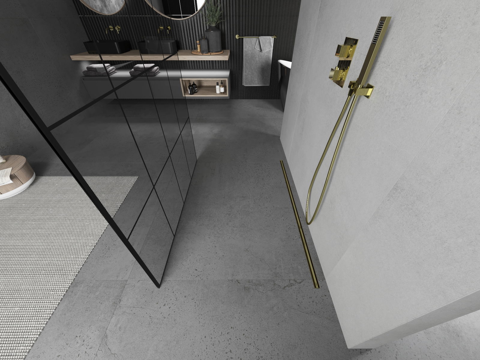 Mexen Kioto свободностояща душ стена 150 x 200 см, черна решетка 8 мм, златна - 800-150-002-50-77