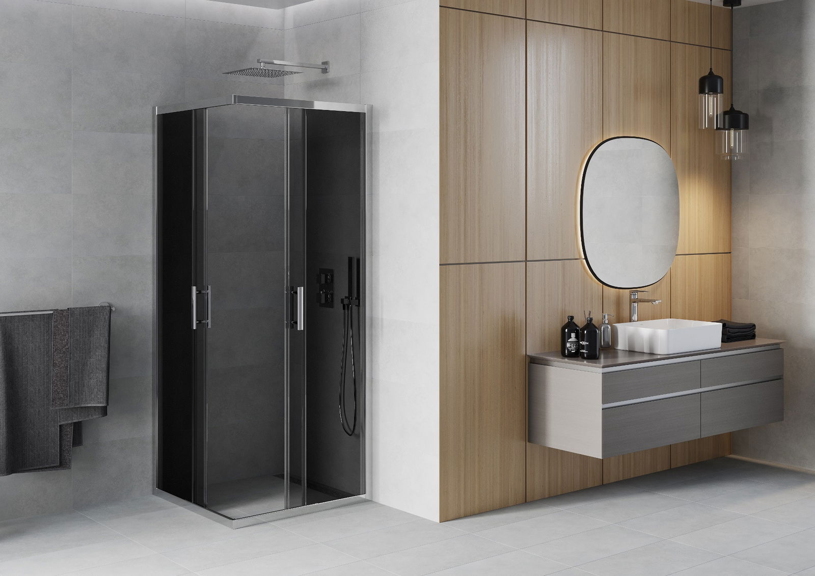 Плъзгащите се врати се движат по специални релси и не изискват допълнително пространство за отваряне, поради което са подходящи за по-малки бани. Благодарение на двойните ролки от здрава пластмаса, движението им е плавно.