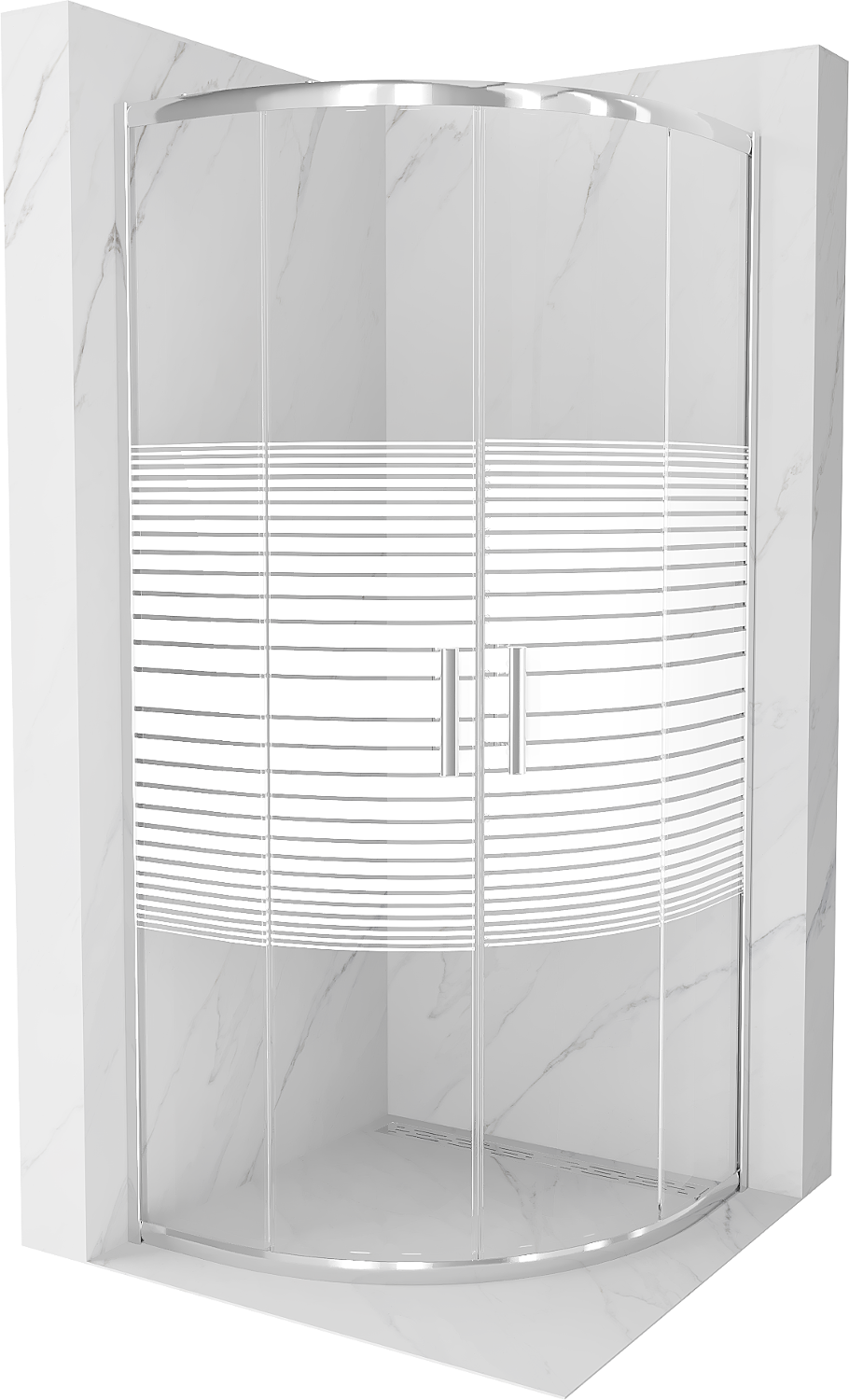 Mexen Rio полукръгла душ кабина 70 x 70 см, бели ленти, хром - 863-070-070-01-20
