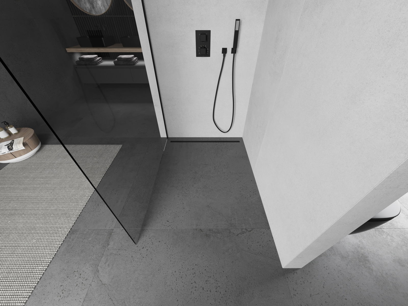 Mexen Kioto стъклена преграда за душ Walk-in 155 x 200 cm, прозрачна 8 mm, черна - 800-155-101-70-00