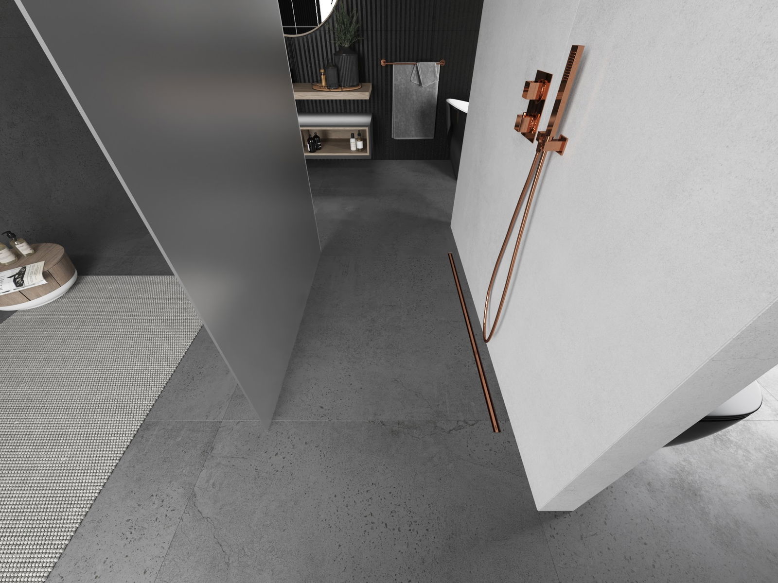 Mexen Kioto свободностояща душ преграда 130 x 200 см, матирано 8 мм, четкана мед - 800-130-002-65-30
