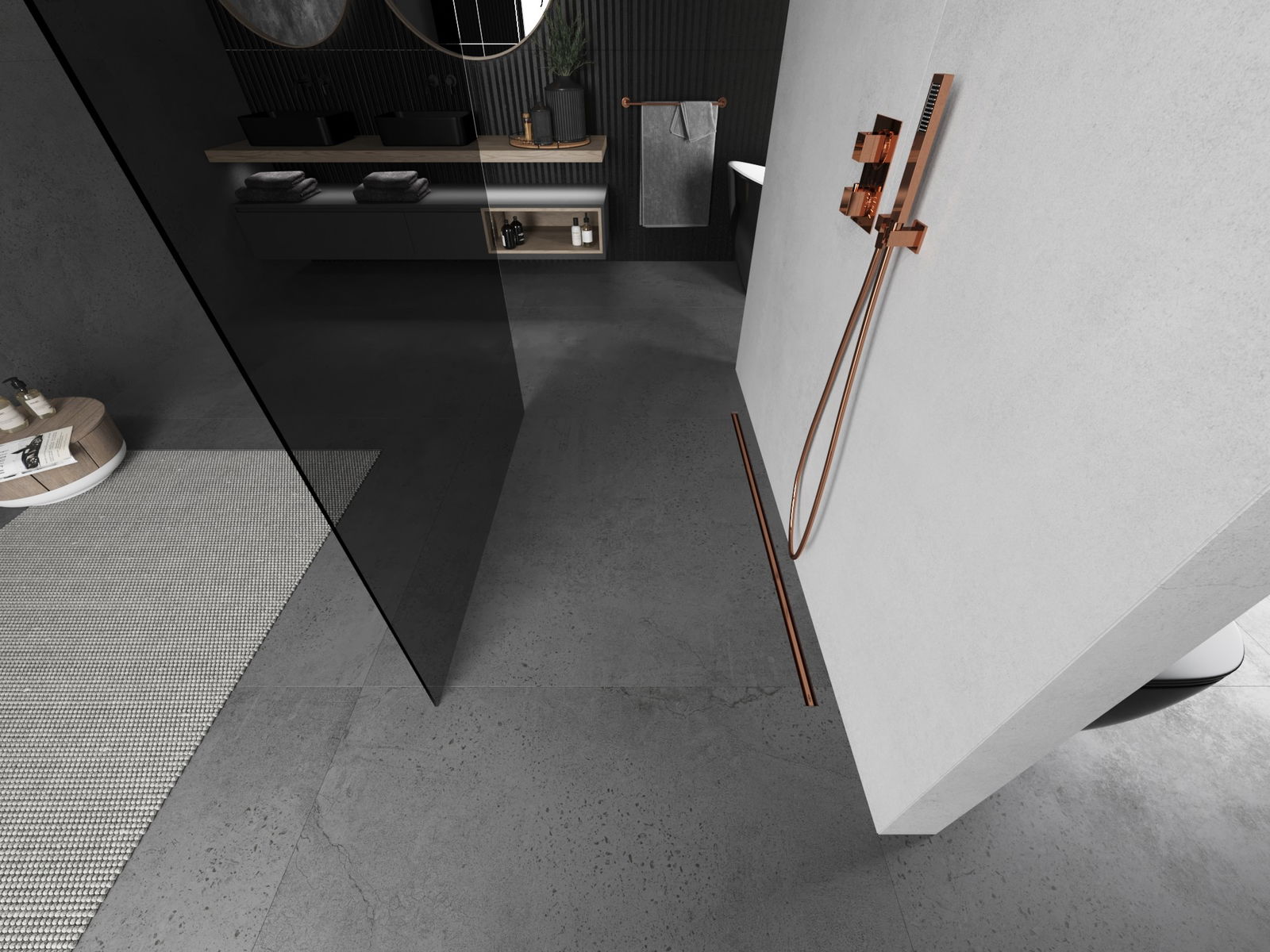 Mexen Kioto свободностояща душ стена 120 x 200 см, графит 8 мм, четкана мед - 800-120-002-65-40