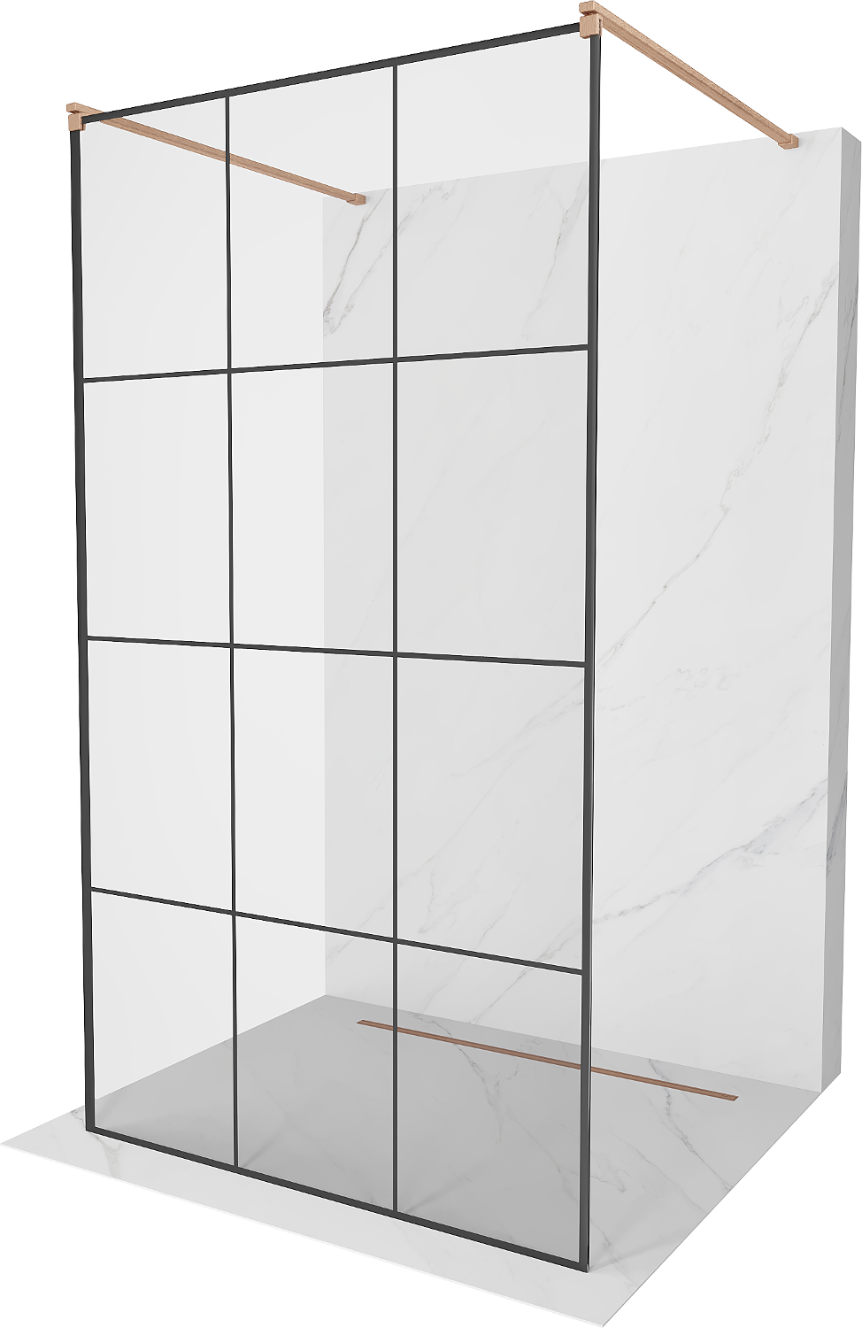 Mexen Kioto свободностояща душ кабина 100 x 200 cm, черна решетка 8 mm, четкана мед - 800-100-002-65-77