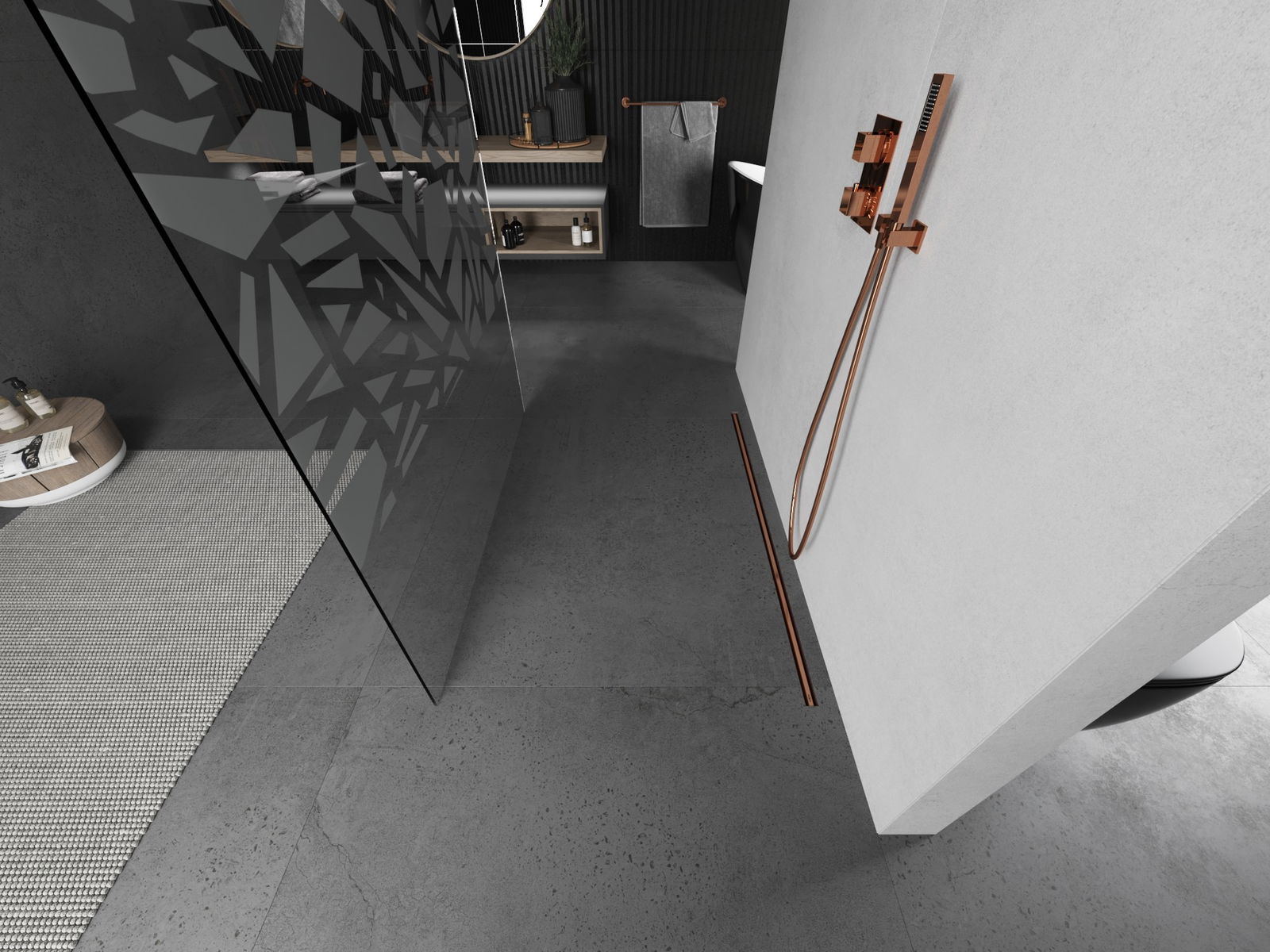 Mexen Kioto свободно стояща душ-преграда 110 x 200 см, бял шарка 8 мм, четкана мед - 800-110-002-65-85