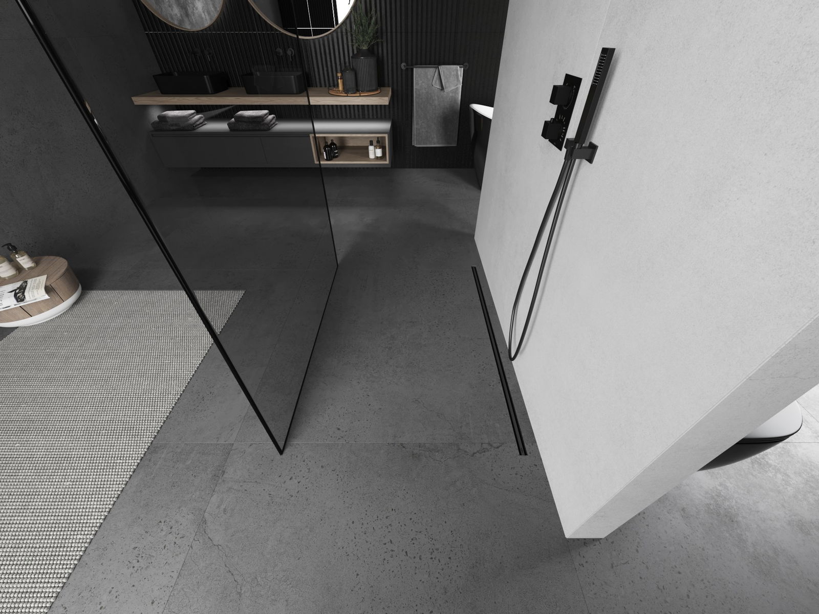 Mexen Kioto самостоятелна душ стена 140 x 200 см, черна рамка 8 мм, четкан сив цвят - 800-140-002-66-70