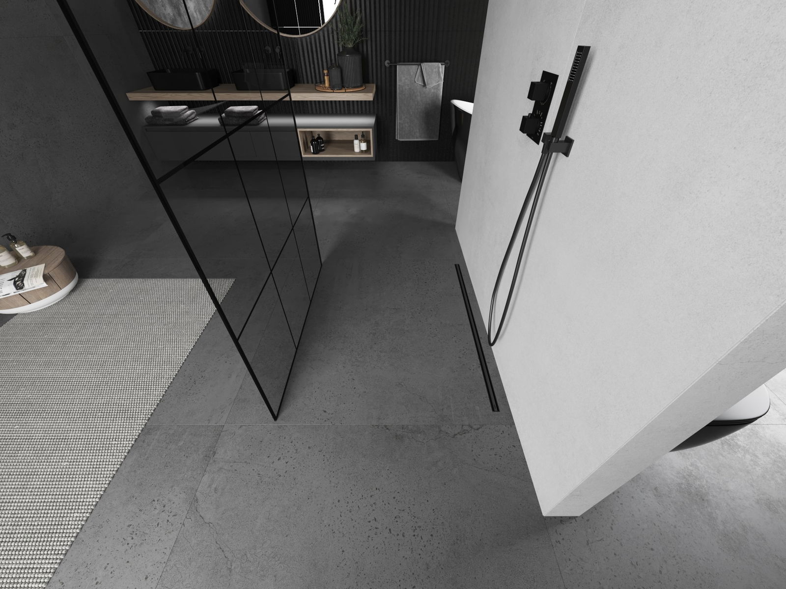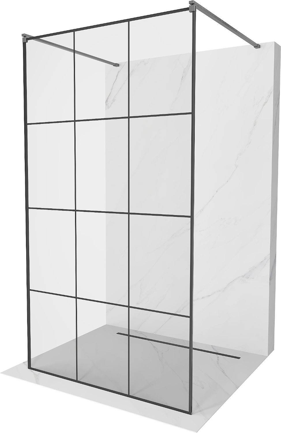 Mexen Kioto самостоятелно стояща душ стена 100 x 200 см, черна решетка 8 мм, четкано оръжейно сиво - 800-100-002-66-77