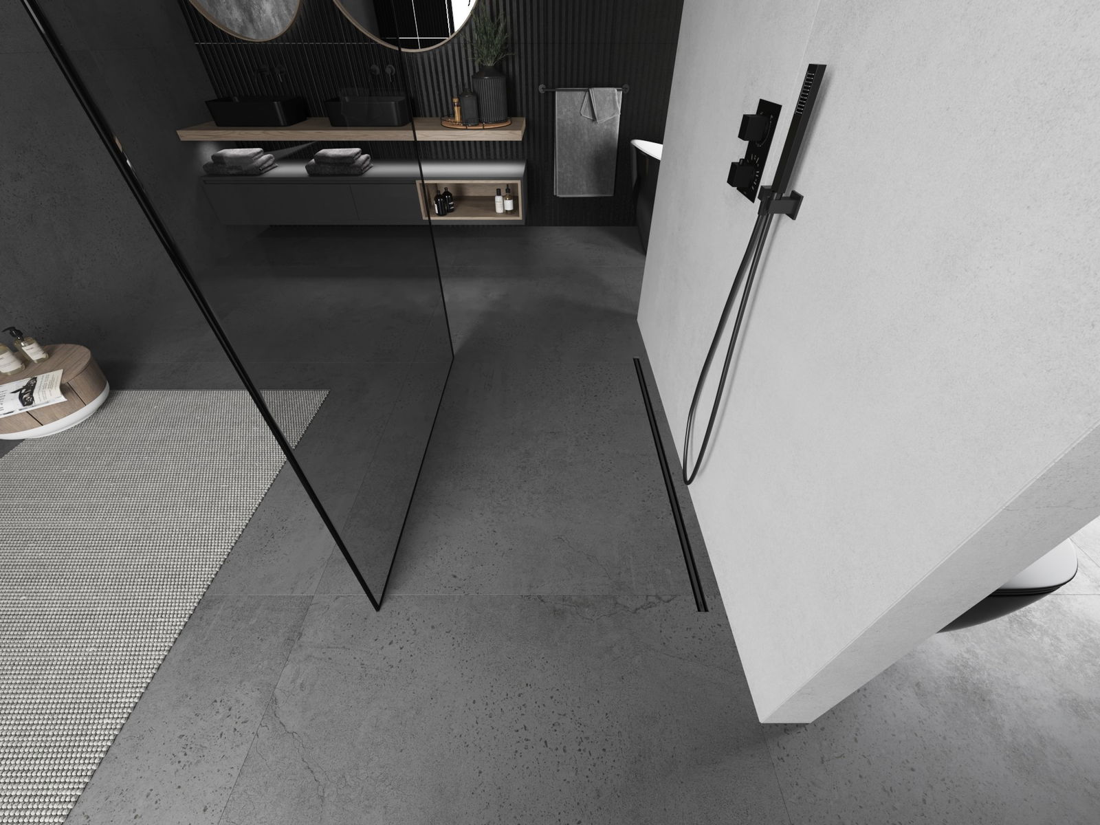 Mexen Kioto свободностояща душ стена 130 x 200 см, черна рамка 8 мм, gun metal - 800-130-002-95-70