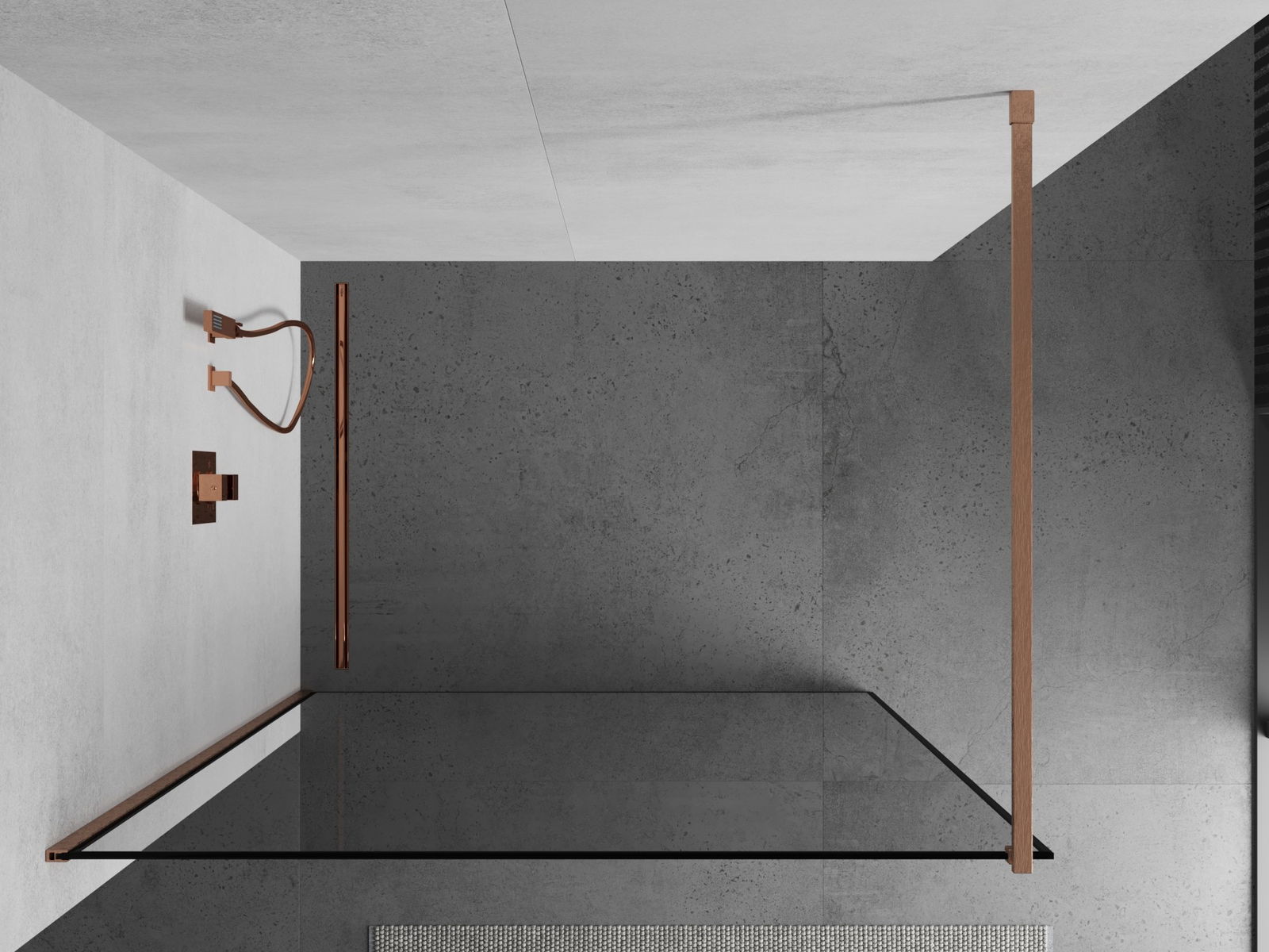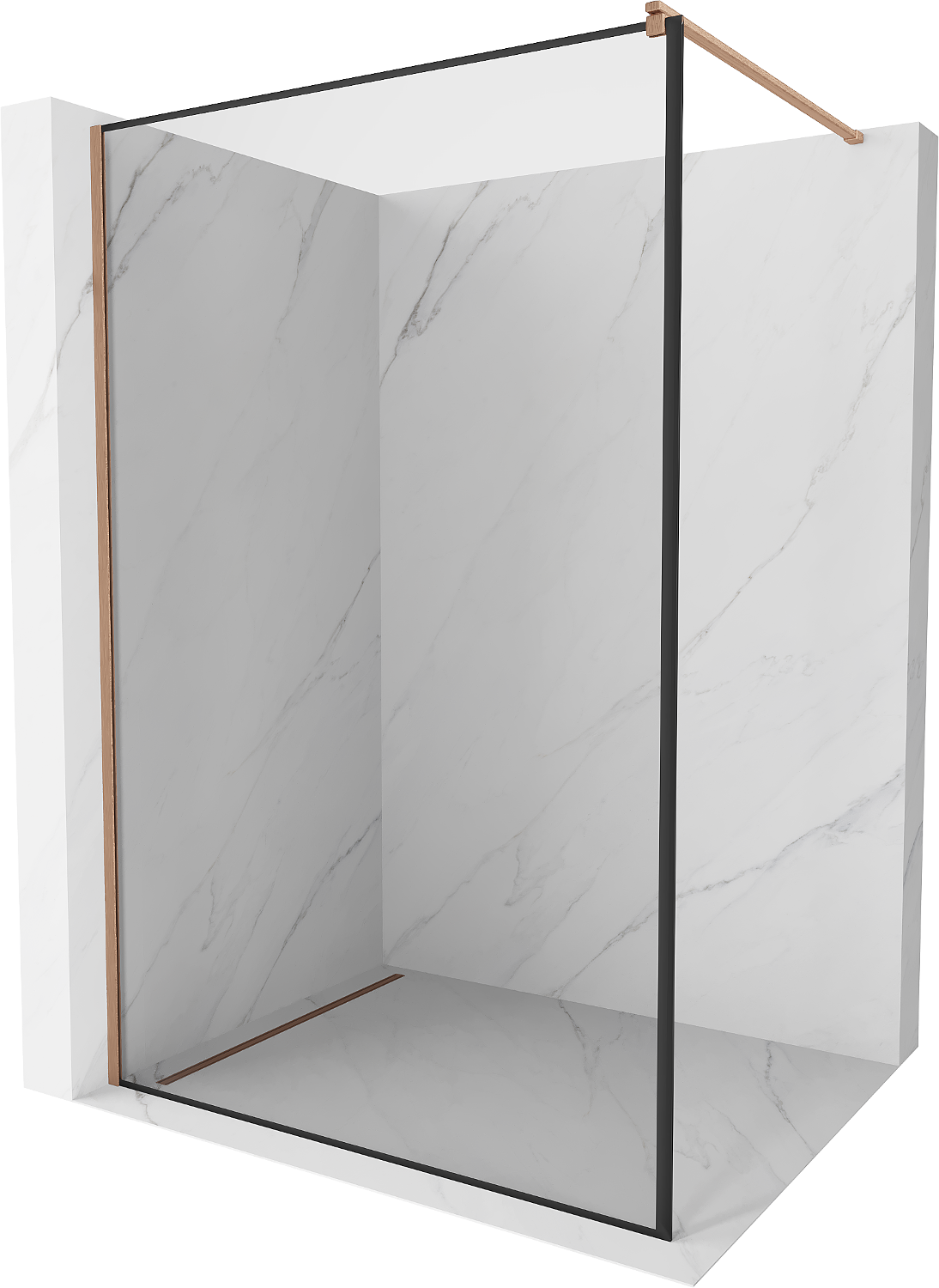 Mexen Kioto Душекран Walk-in 60 x 200 см, черна рамка 8 мм, четкана мед - 800-060-101-65-70