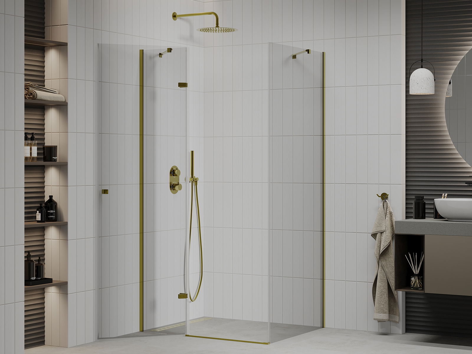 Mexen Roma отваряща се душ кабина 110 x 70 см, прозрачна, златна - 854-110-070-50-00
