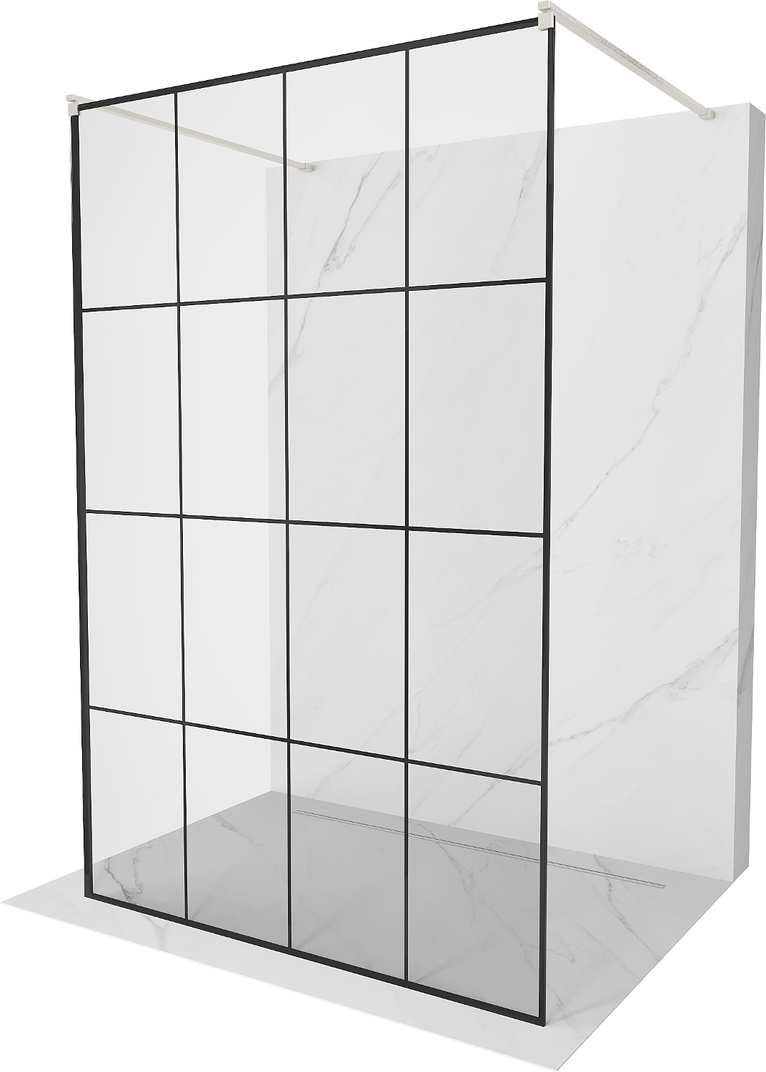 Mexen Kioto самостоятелна душ стена 150 x 200 см, черна решетка 8 мм, четкан никел - 800-150-002-97-77