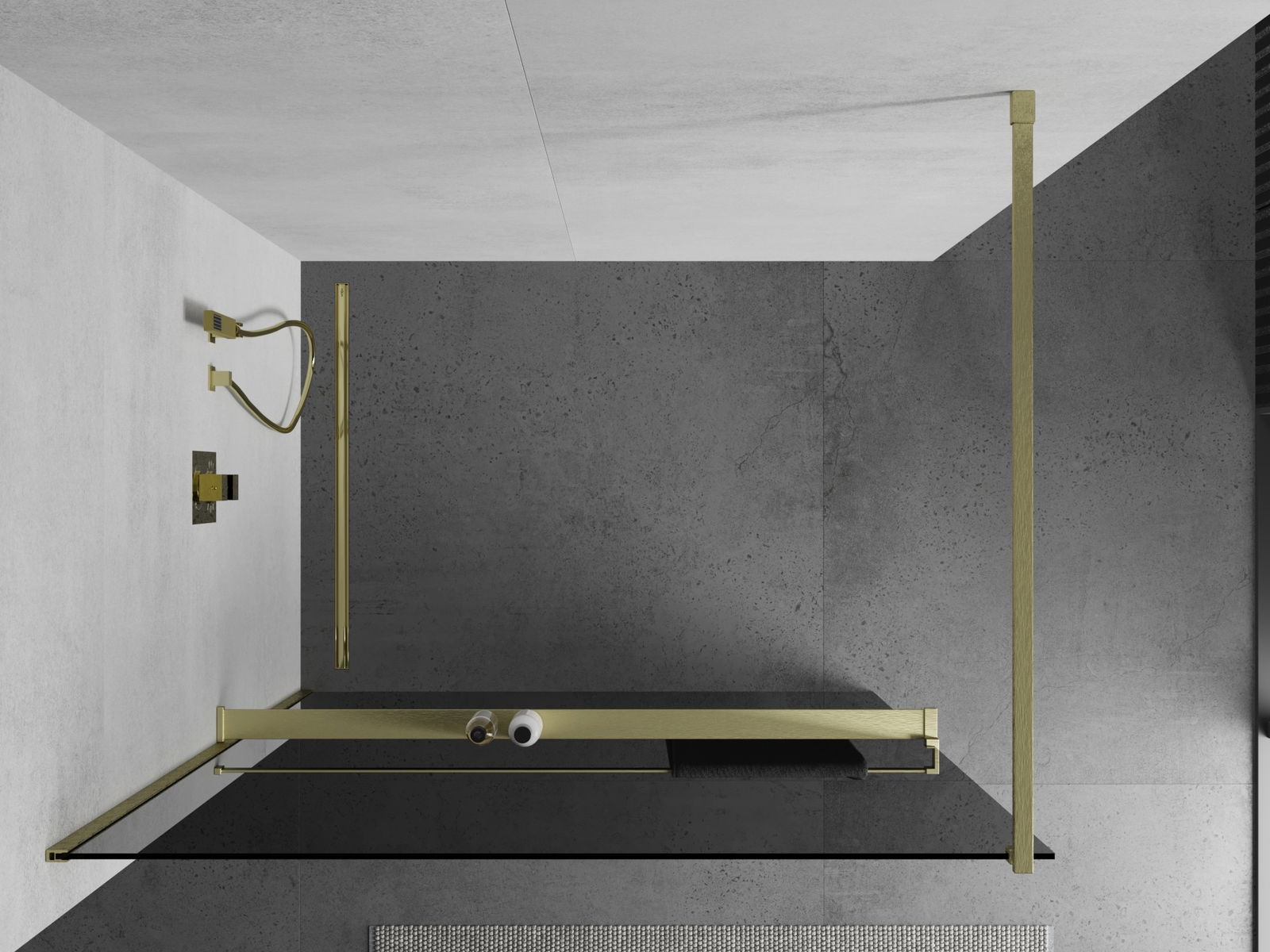 Mexen Kioto+ душ параван с рафт Walk-in 100 x 200 см, графит, златен четкан - 800-100-121-55-40