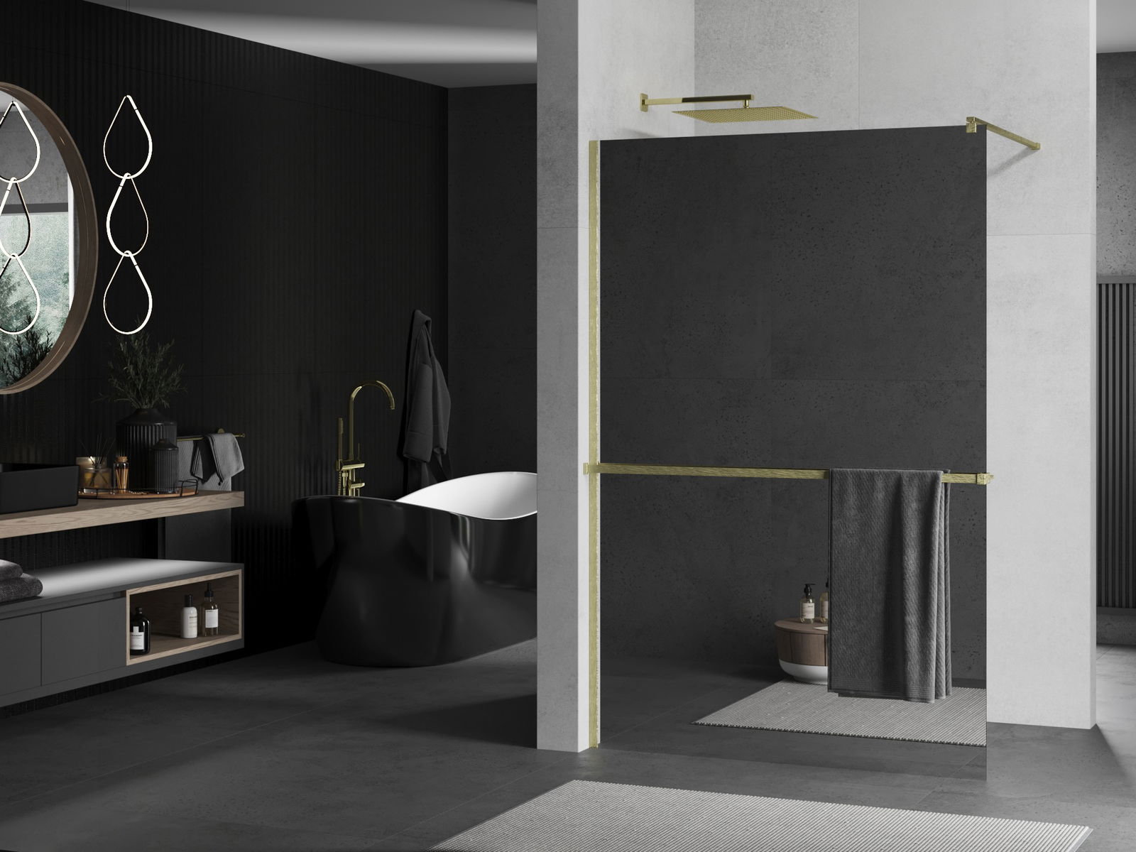 Mexen Kioto+ душ кабина с рафт Walk-in 130 x 200 см, огледало, златна четкована - 800-130-121-55-50
