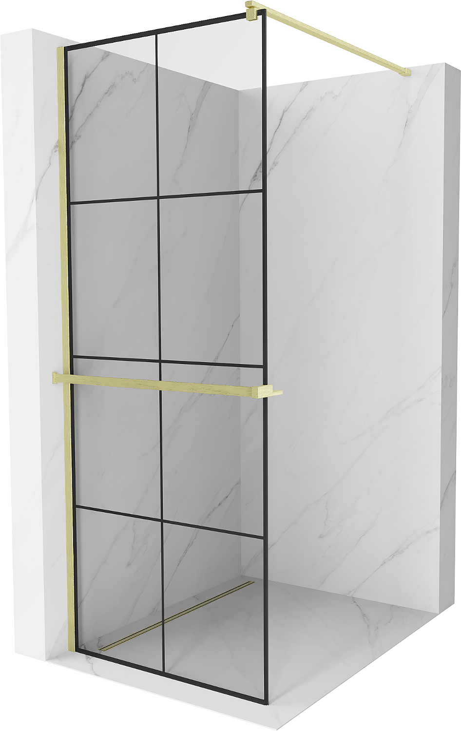 Mexen Kioto+ душ стена с рафт Walk-in 70 x 200 см, черна решетка, златно четкано - 800-070-121-55-77