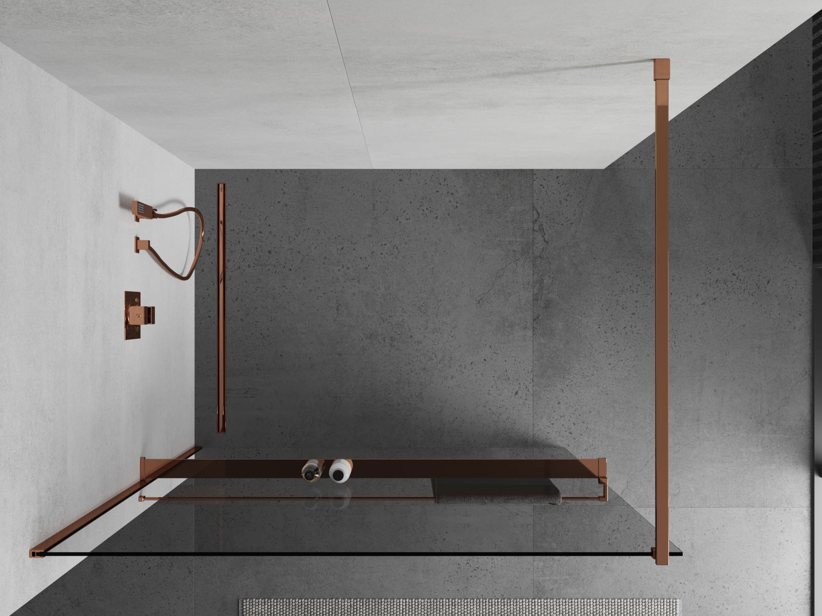 Mexen Kioto+ душ параван със стъклена полица Walk-in 85 x 200 см, прозрачно, розово злато - 800-085-121-60-00